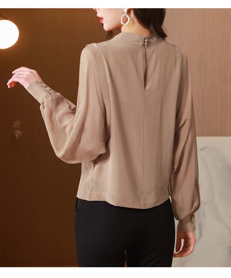 送料無料 ソリッドカラーひだスプライシングガーゼブラウス女性の 2023 秋冬ルーズトップスバットウィングスリーブシャツ オータム 秋物 ウィンター 冬物 AE1288776634776723311
