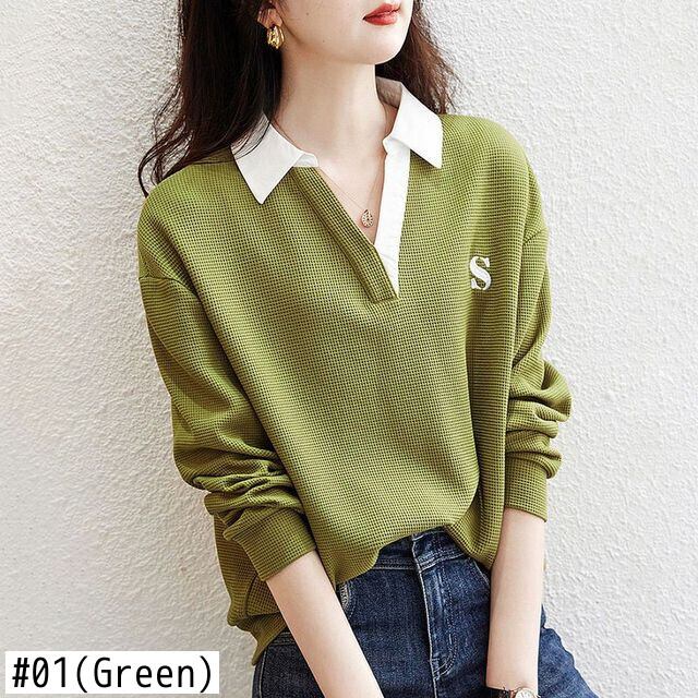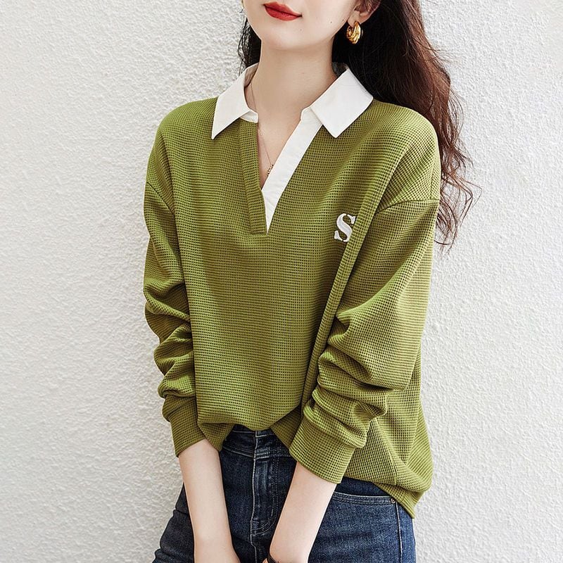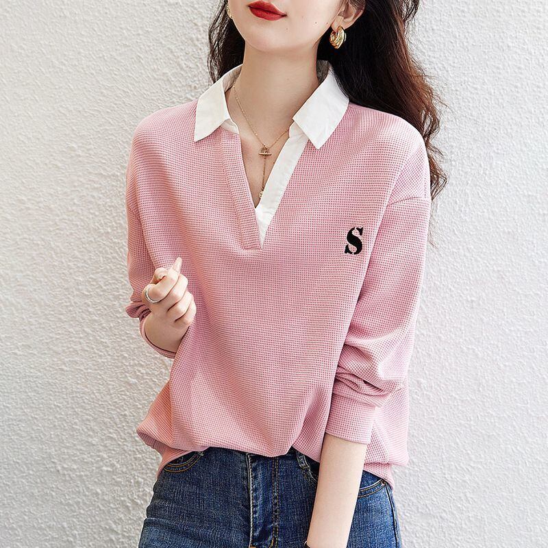 送料無料 ラペルスプライス文字刺繍 Tシャツ女性の 2023 秋冬ルーズプルオーバー通勤 Tシャツ オータム 秋物 ウィンター 冬物 AE1288776635247130218
