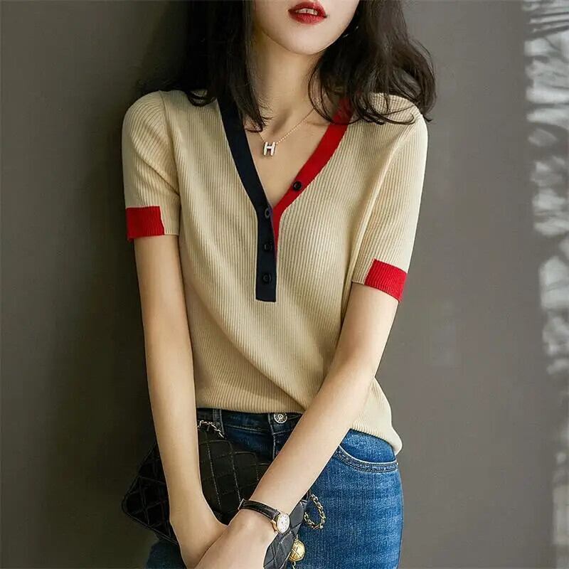 送料無料 プリント V ネックスプライスボタンオールマッチブラウス女性の 2023 春プルオーバールーズシャツ スプリング 春物 Vネック AE1288776615323157434