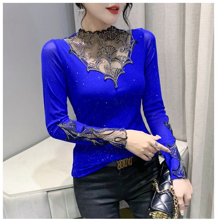 送料無料 フリルガーゼスパンコールダイヤモンドブラウス女性の 2023 秋冬特大トップスオフィスレディシャツ ラッフル オータム 秋物 ウィンター 冬物 会社 学校 通勤や通学にも AE1288776660611489787