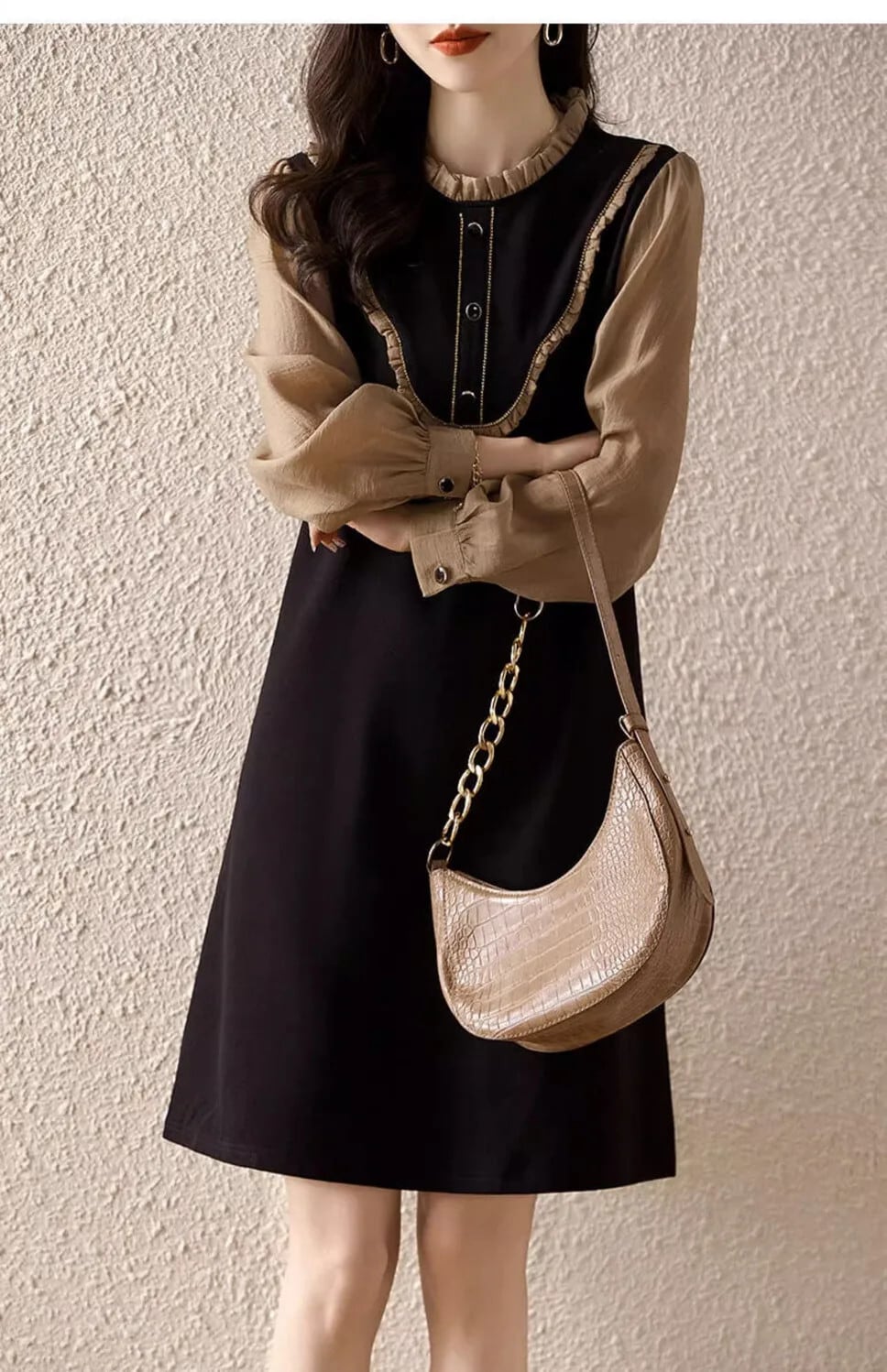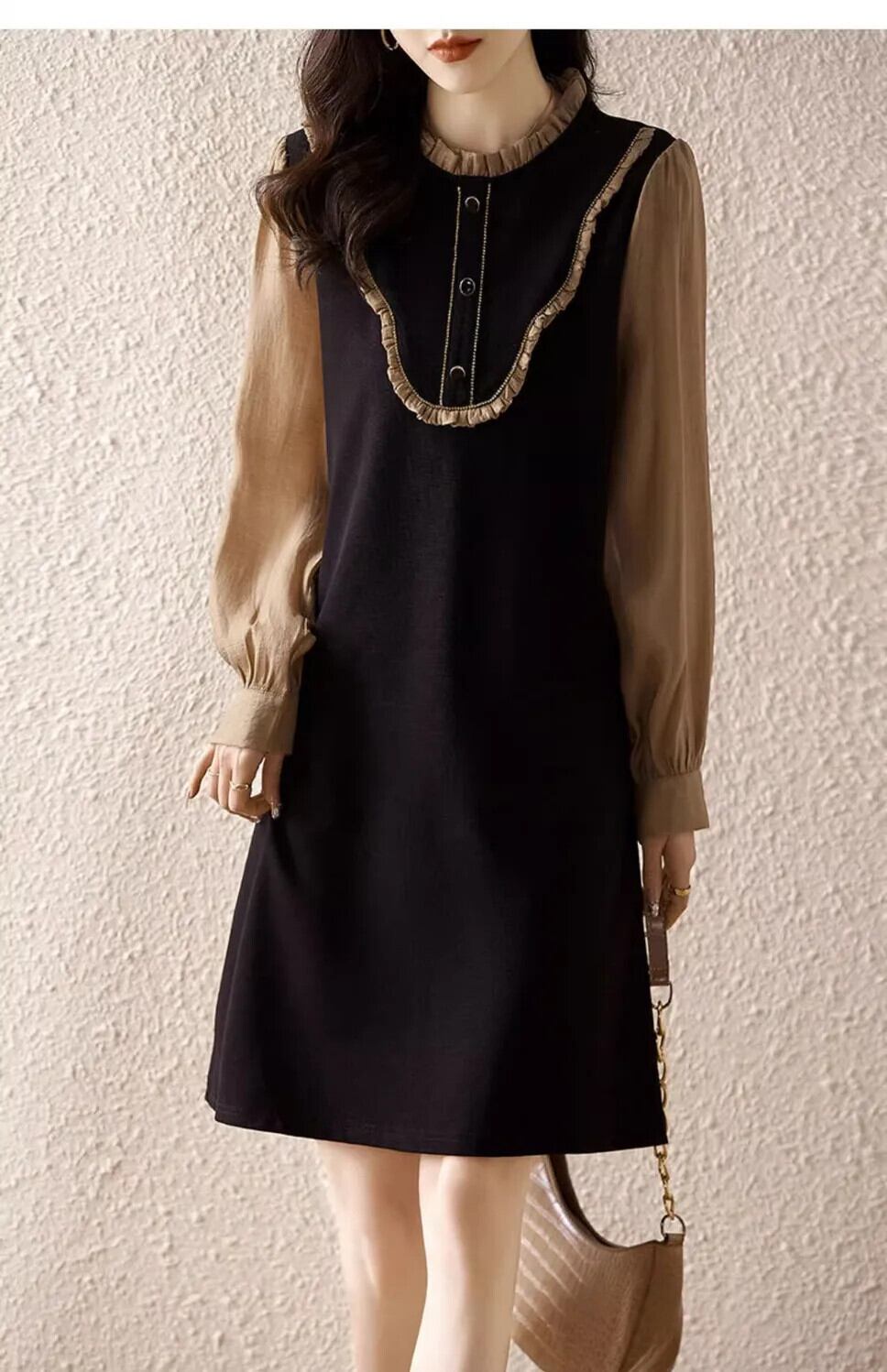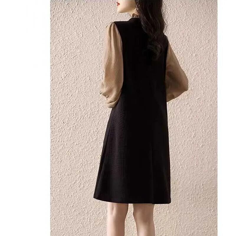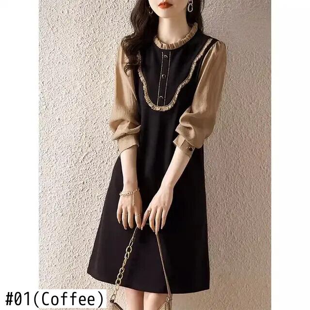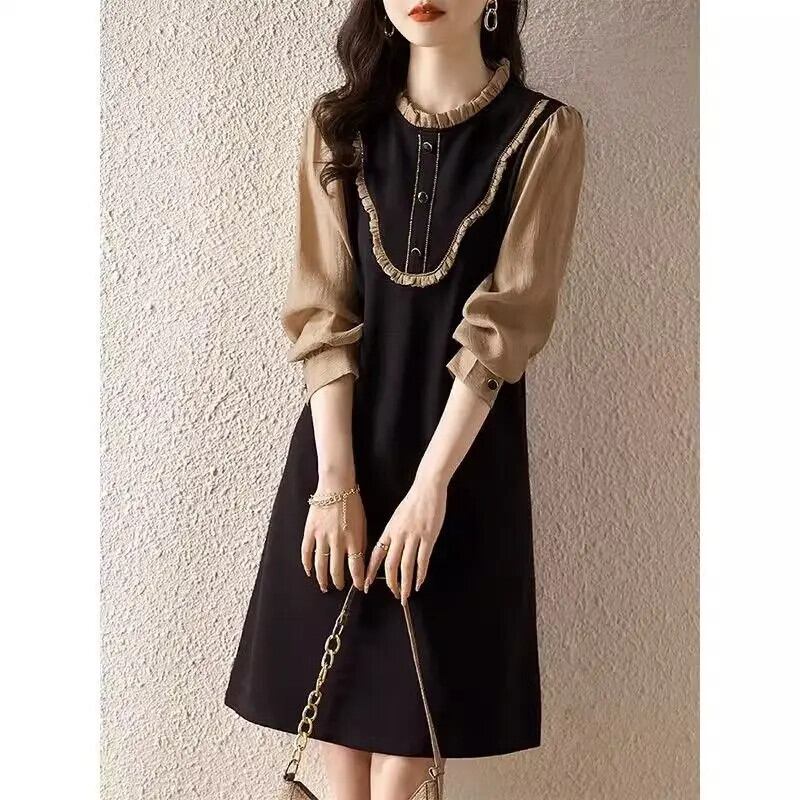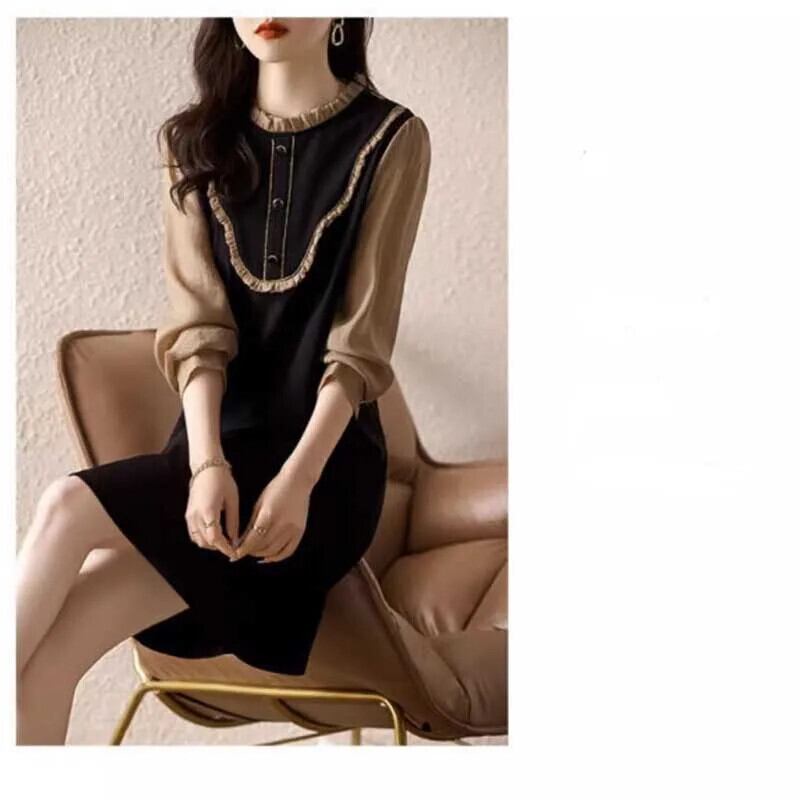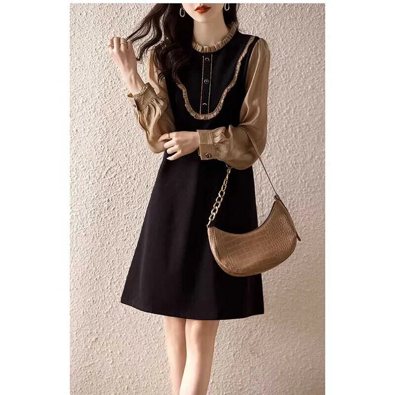 送料無料 O ネックスプライシングフリルフェイク 2 ピースミニドレス女性の 2024 春ルーズオフィスレディドレス ラッフル スプリング 春物 Oネック 会社 学校 通勤や通学にも AE1288776645147282682