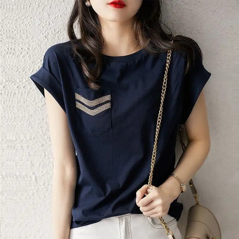 送料無料 スプライス ポケット ダイヤモンド バットウィング スリーブ ブラウス レディース 2023 夏 特大 プルオーバー シャツ サマー 夏物 AE1288776692186274629
