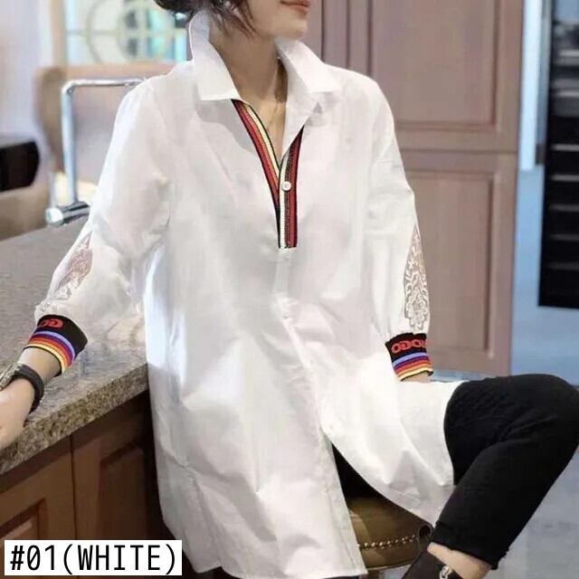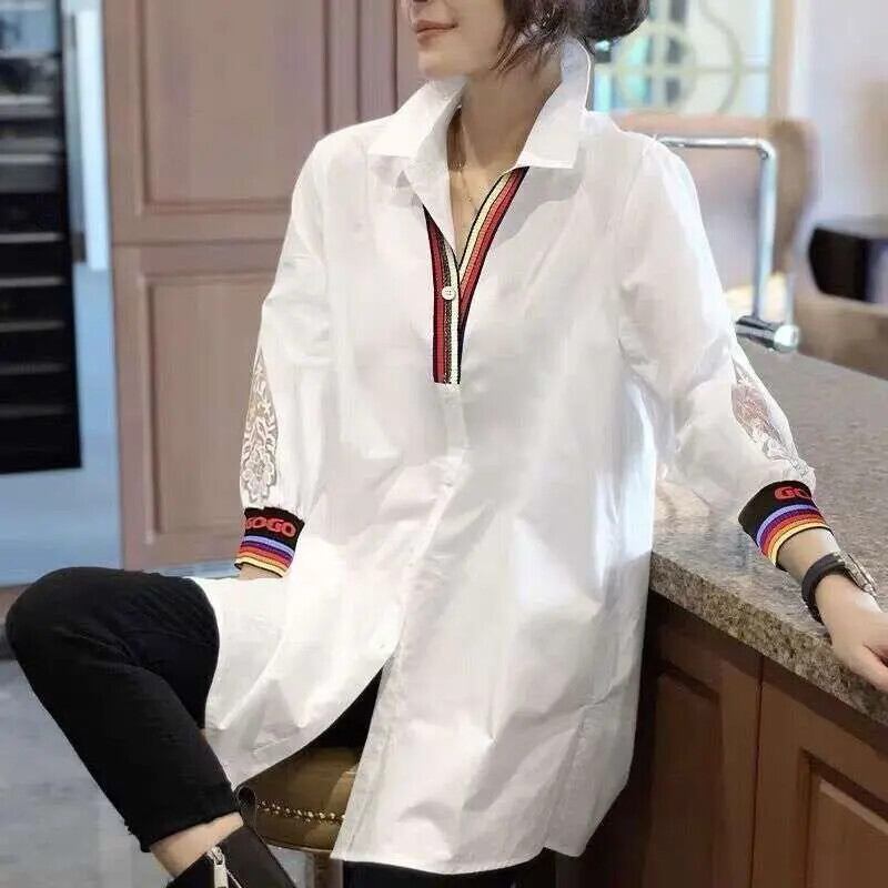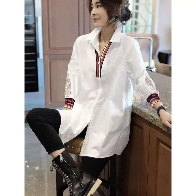 送料無料 ラペルボタンレター中空アウトレースシャツ女性の 2024 春夏ルーズオールマッチトップスブラウス スプリング 春物 サマー 夏物 AE1288776628551857947
