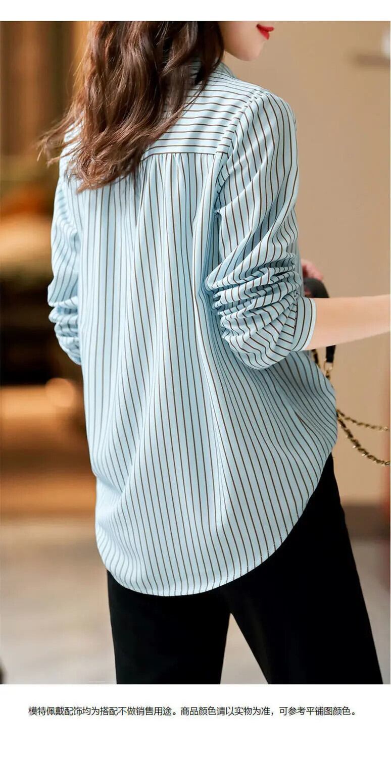 送料無料 プリントラペルルーズ刺繍ストライプシャツ女性の 2022 秋トップスオールマッチオフィスレディブラウス オータム 秋物 会社 学校 通勤や通学にも AE1288776619434417216
