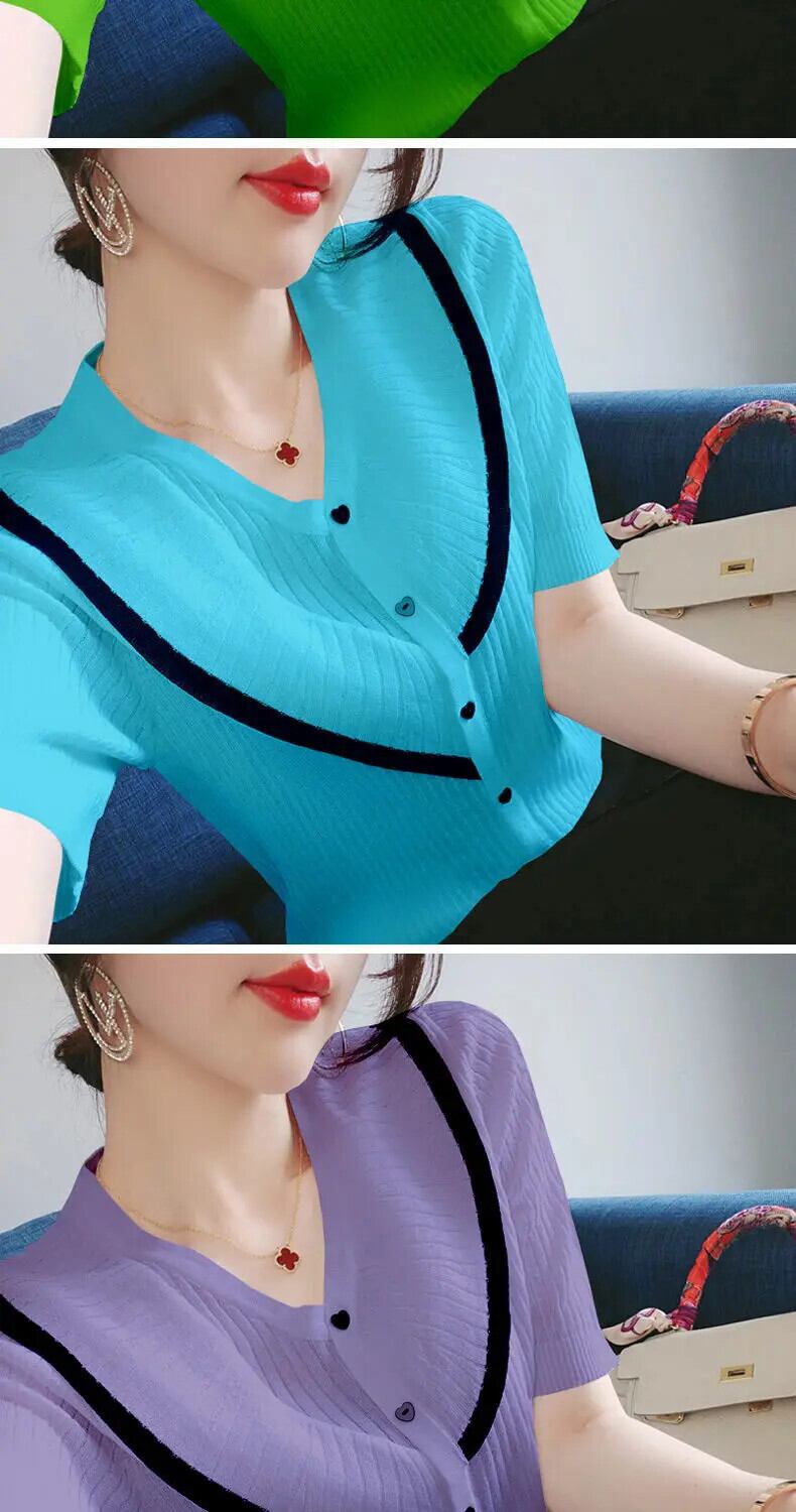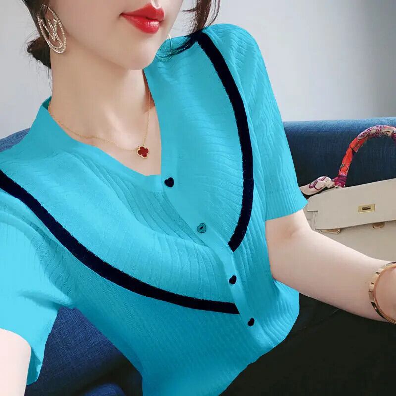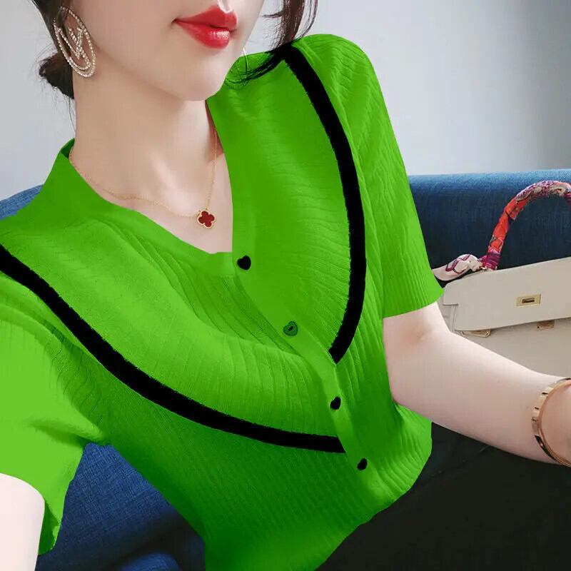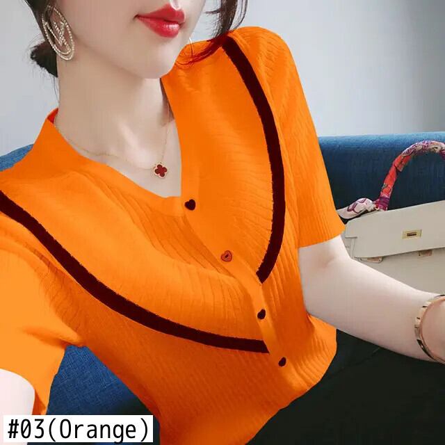 送料無料 V ネックスプライス半袖ボタン特大シャツ 2022 夏トップスルーズ通勤レディースブラウス ショート ハーフスリーブ サマー 夏物 Vネック AE1288776654934502571