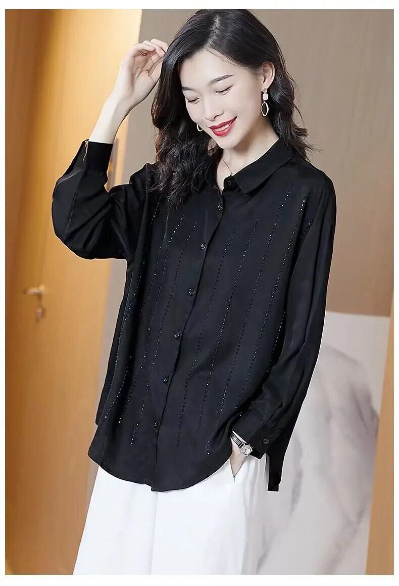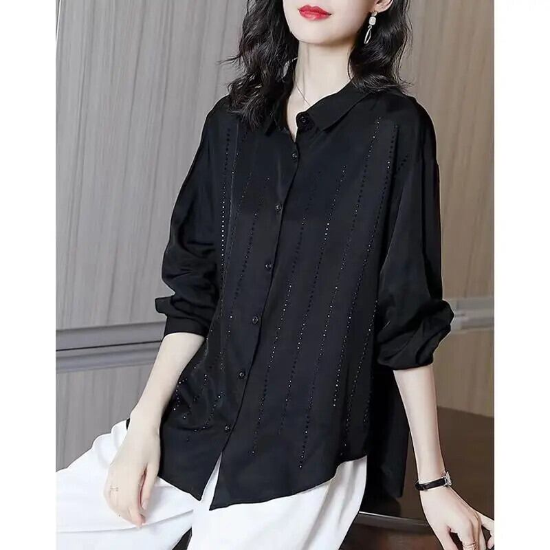 送料無料 ラペルルーズソリッドカラーダイヤモンドシャツ女性の 2023 秋冬特大トップス非対称ブラウス オータム 秋物 ウィンター 冬物 AE1288776626691594173