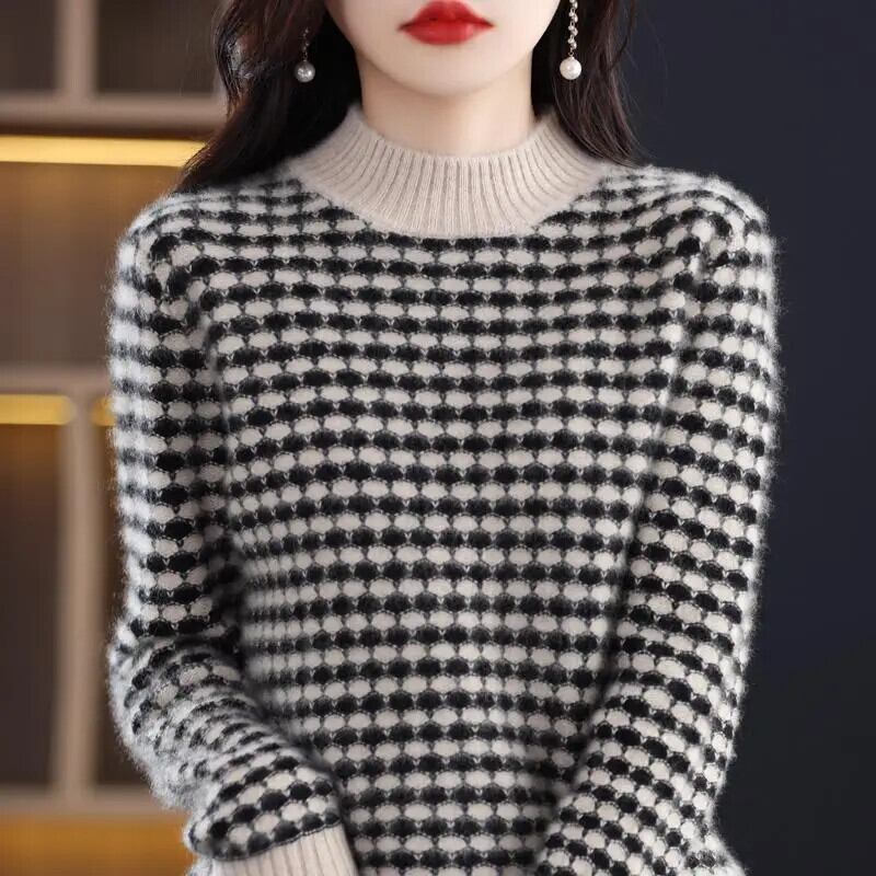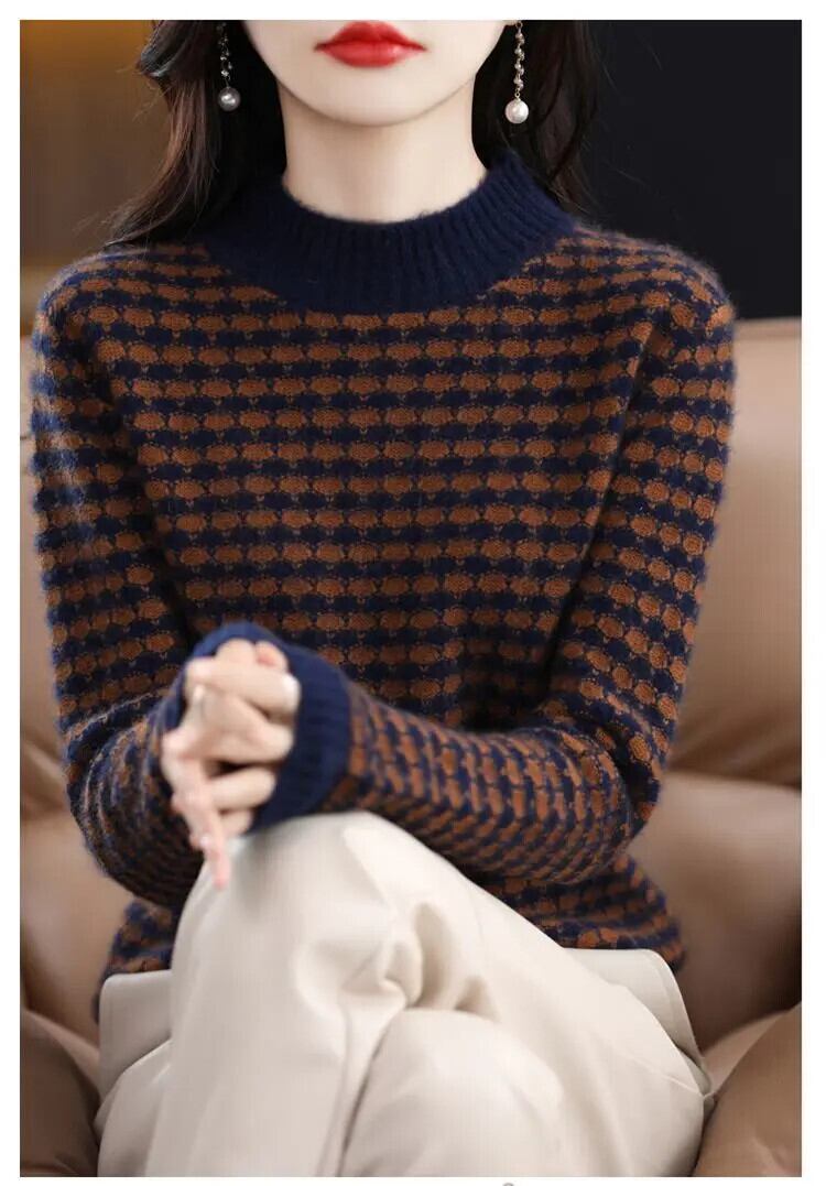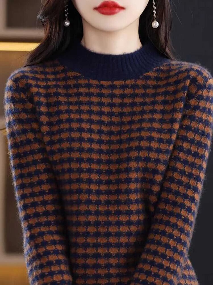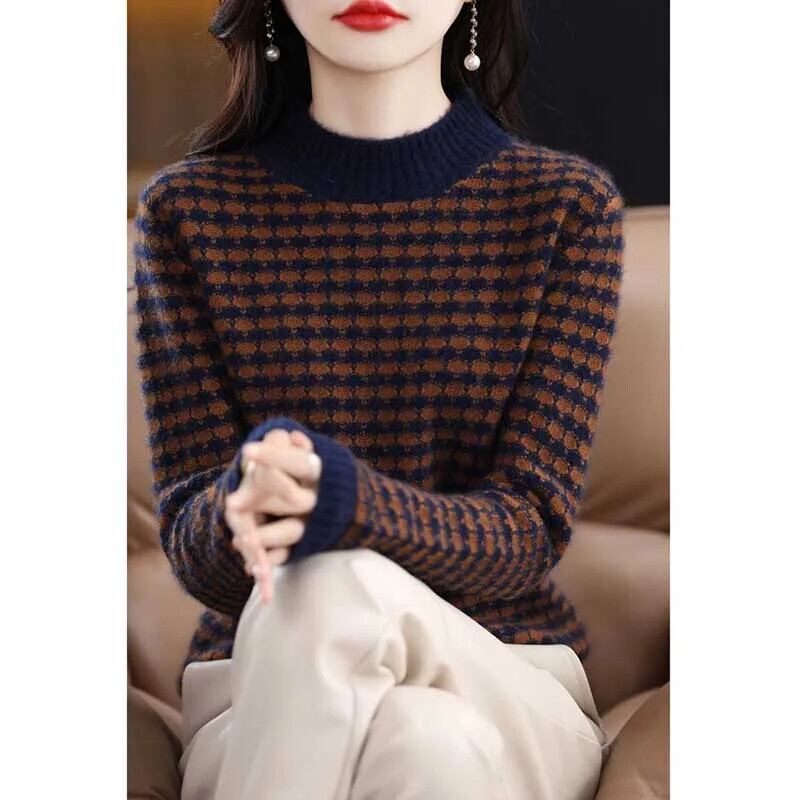 送料無料 スタンドカラースプライスストライプブラウス女性の 2023 冬ルーズニットオールマッチトップス通勤シャツ ウィンター 冬物 AE1288776640063885833