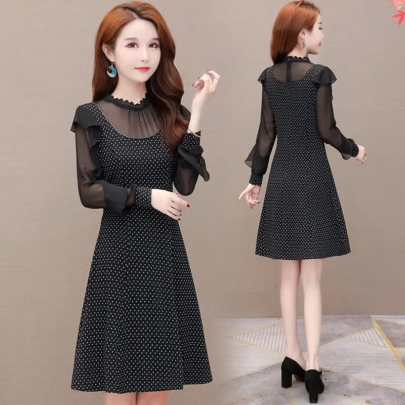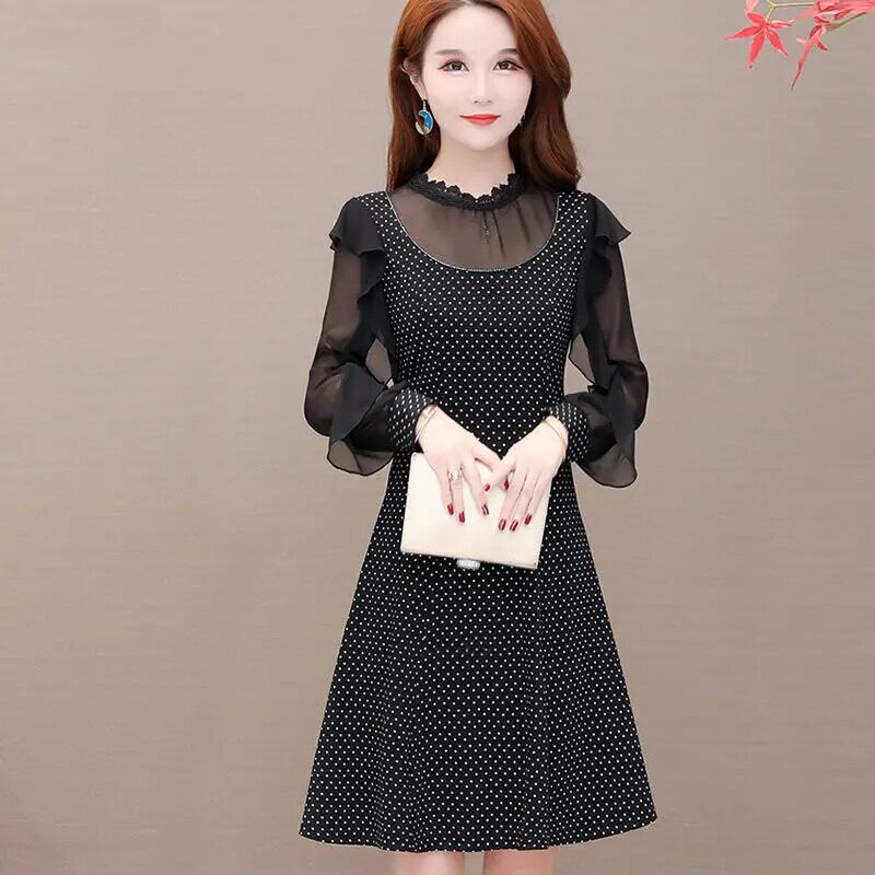 送料無料 ガーゼレーススプライスポルカドットバタフライスリーブパーティードレスレディース2024春ゆったりOLミニドレス スプリング 春物 会社 学校 通勤や通学にも AE1288776687422109514