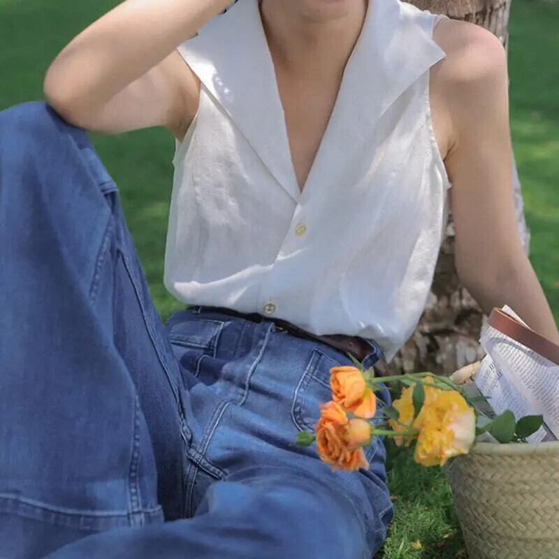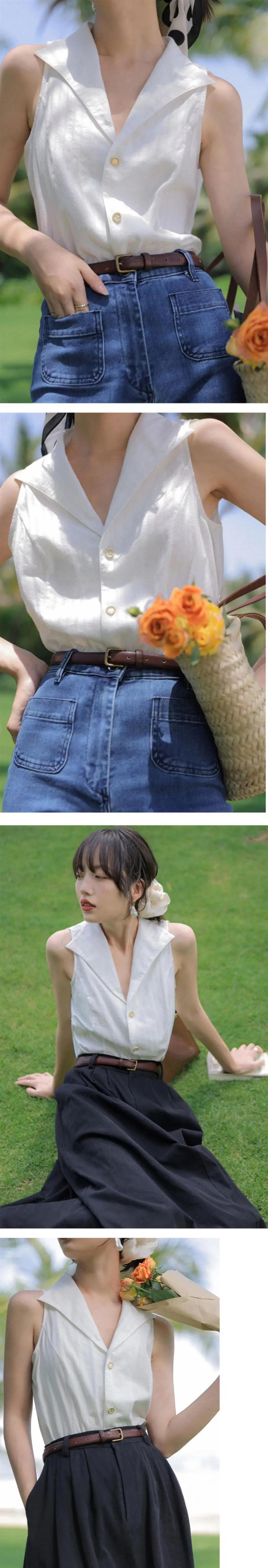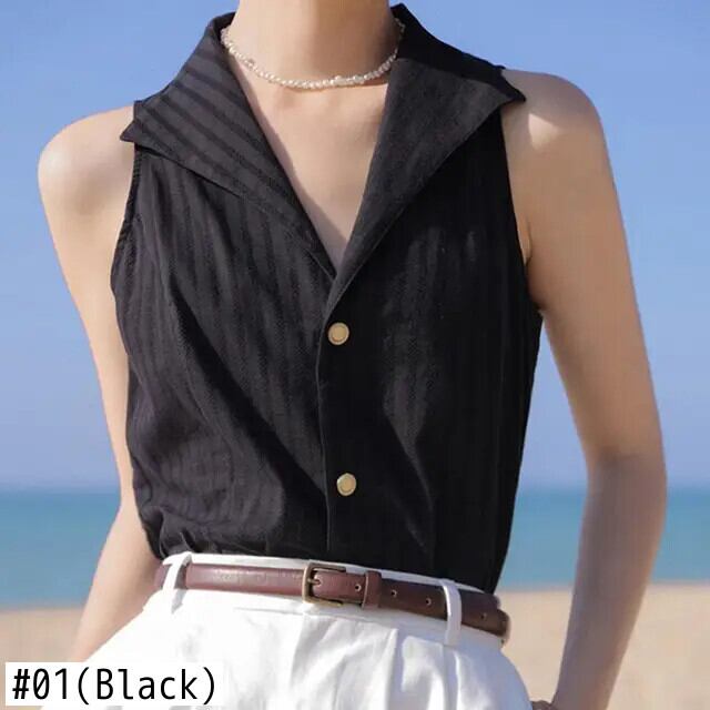 送料無料 V ネックストライプノースリーブボタンシフォン特大シャツ 2022 夏トップスルーズ通勤女性ブラウス サマー 夏物 Vネック AE1288776646440428707