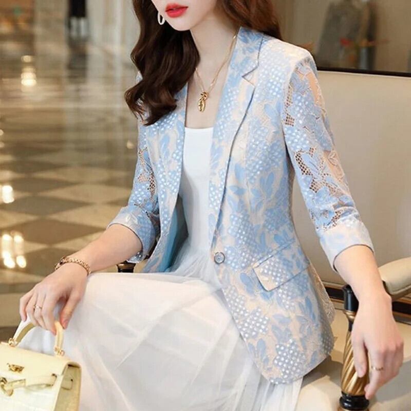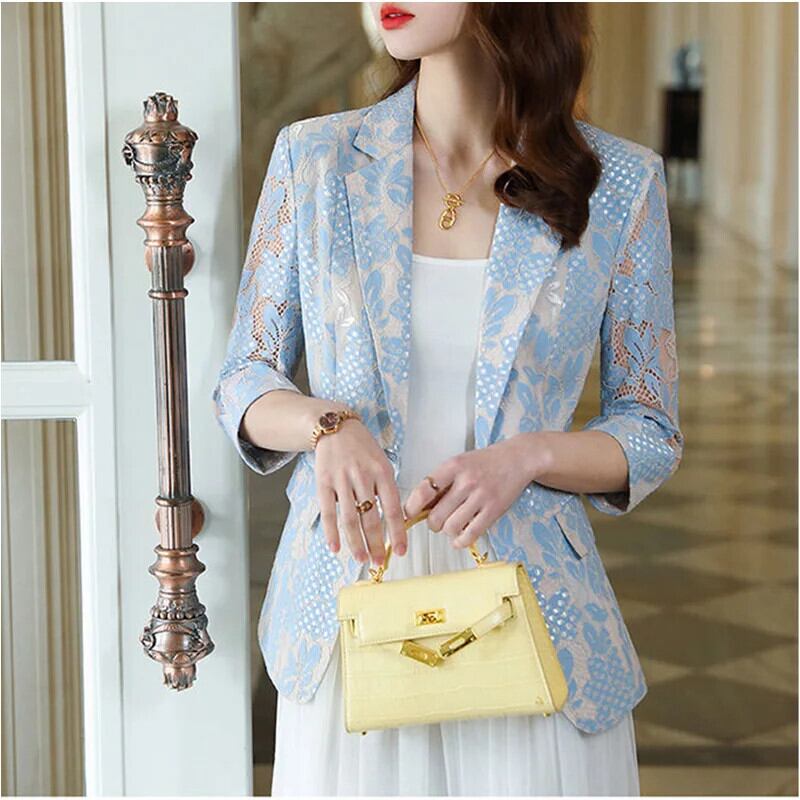 送料無料 レーススプライスポケットオールマッチシャツ女性の 2023 夏ルーズトップススリークォーターオフィスレディブラウス サマー 夏物 会社 学校 通勤や通学にも AE1288776681543031068