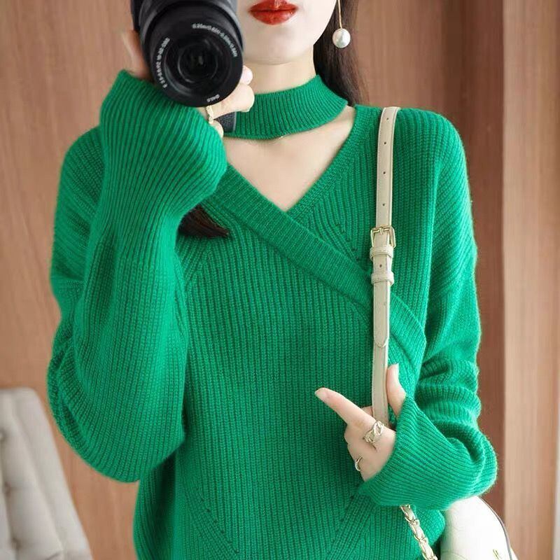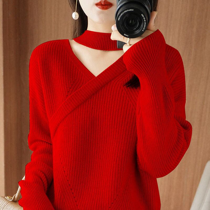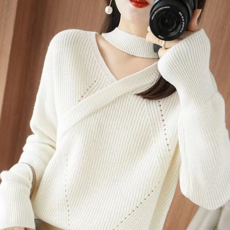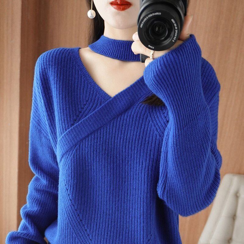 送料無料 Vネックルーズセーターレディース2023冬オールマッチプルオーバー通勤トップス ウィンター 冬物 AE1288776643227016143