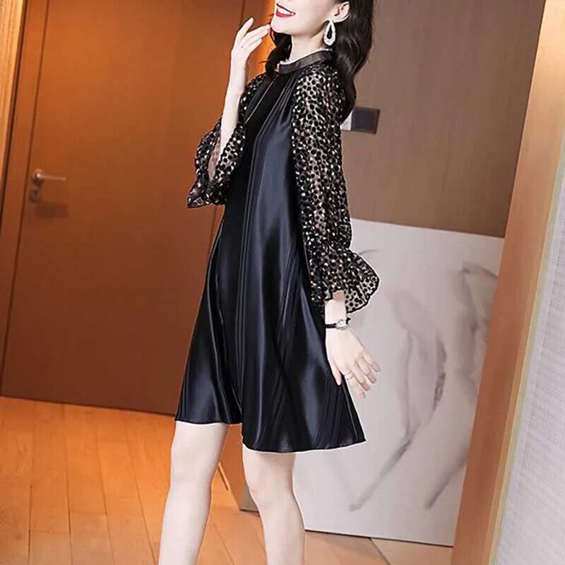 送料無料 スタンドカラーフリル水玉フレアスリーブミニドレス女性の 2024 夏ルーズオフィスレディドレス ラッフル サマー 夏物 会社 学校 通勤や通学にも AE128877669441675236