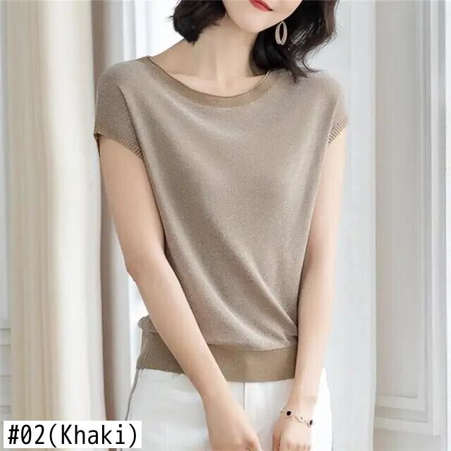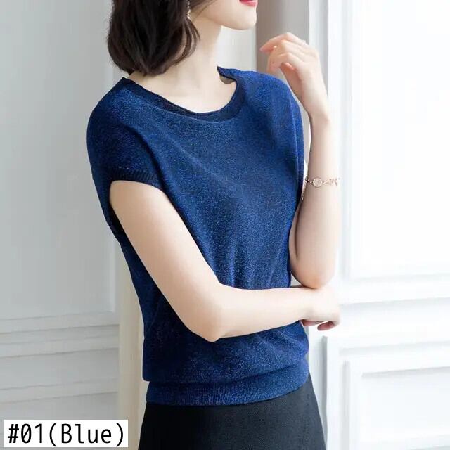 送料無料 ソリッドカラールーズブライトシルク半袖ブラウス女性の 2023 夏プルオーバートップスシャツ ショート ハーフスリーブ サマー 夏物 AE1288776660425644758