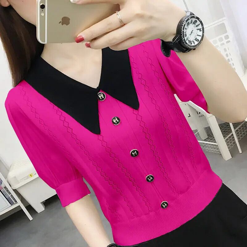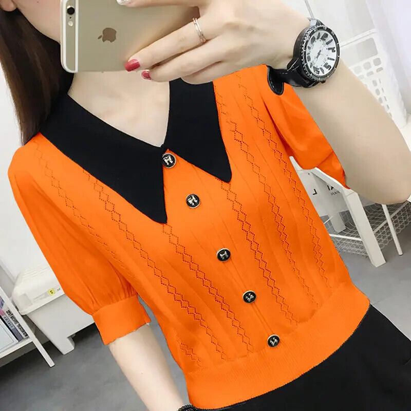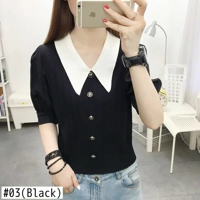 送料無料 ピーターパン襟スプライシング中空アウトボタン特大シャツ夏トップスルーズ通勤ブラウス サマー 夏物 AE1288776687693065295
