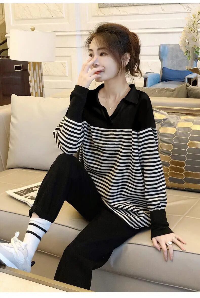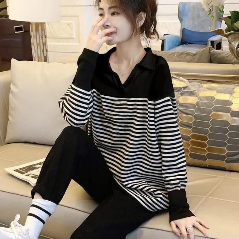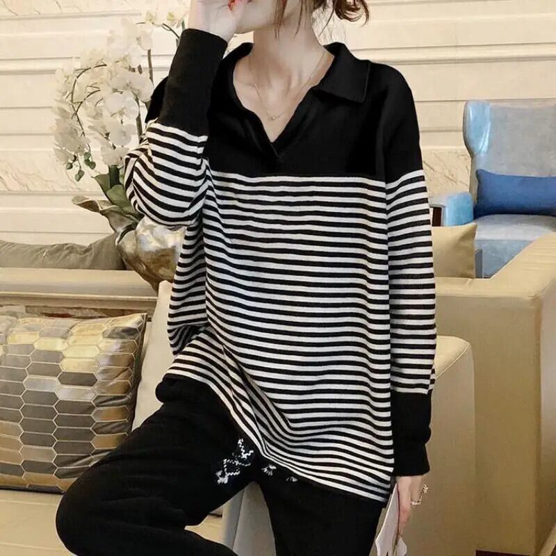 送料無料 V ネック スプライス プリント ストライプ ブラウス レディース 2023 春 オーバーサイズ プルオーバー オールマッチ シャツ スプリング 春物 Vネック AE1288776693525877256