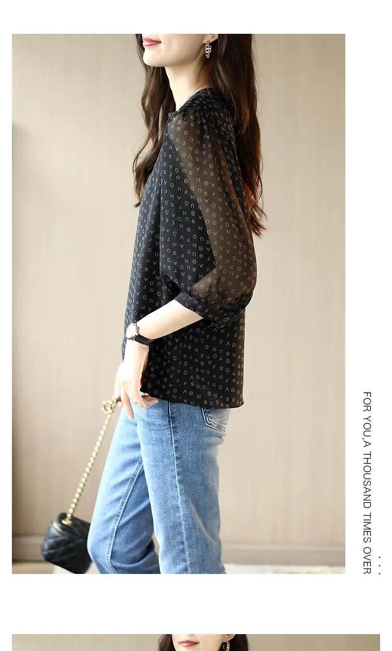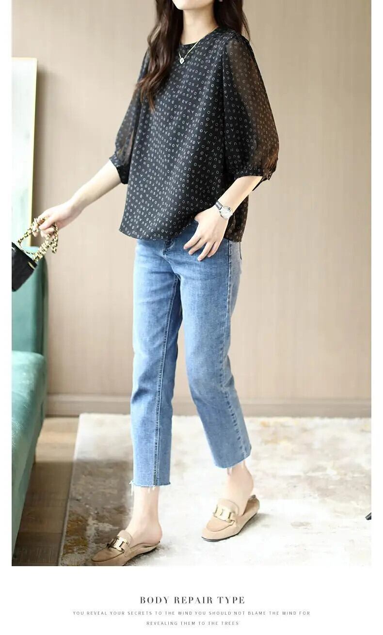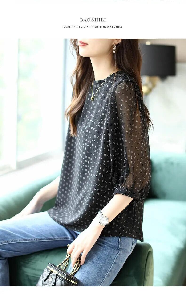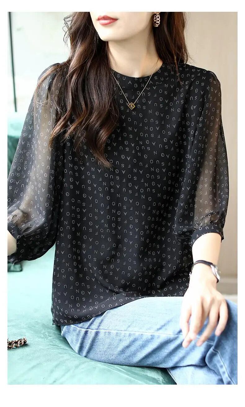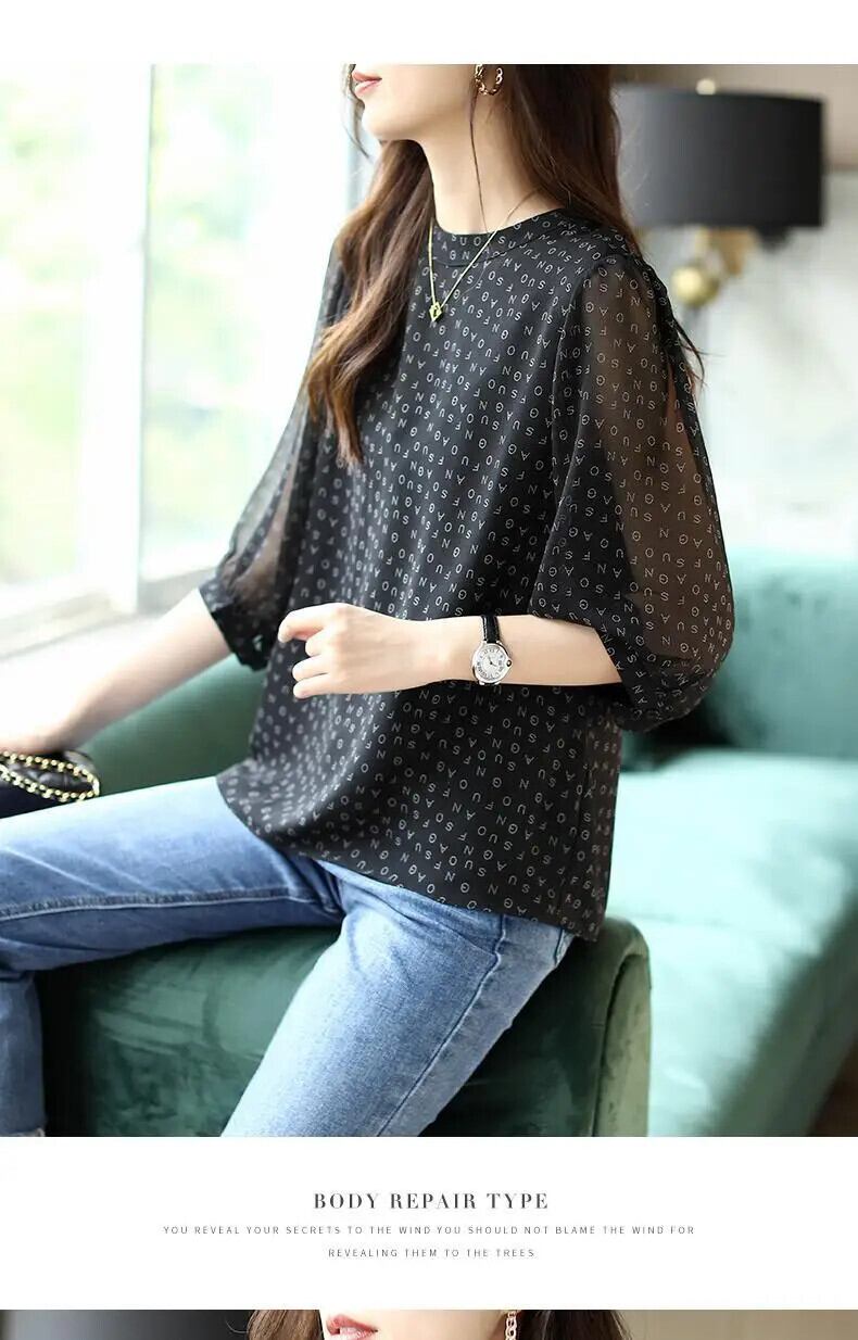 送料無料 ヴィンテージプリント O ネックパフスリーブ特大シフォンシャツ夏プルオーバールーズ通勤女性ブラウス 2022 サマー 夏物 Oネック ビンテージ AE1288776644322084611