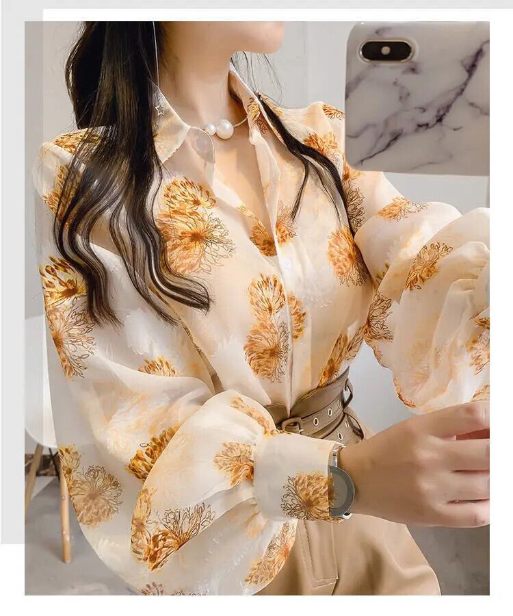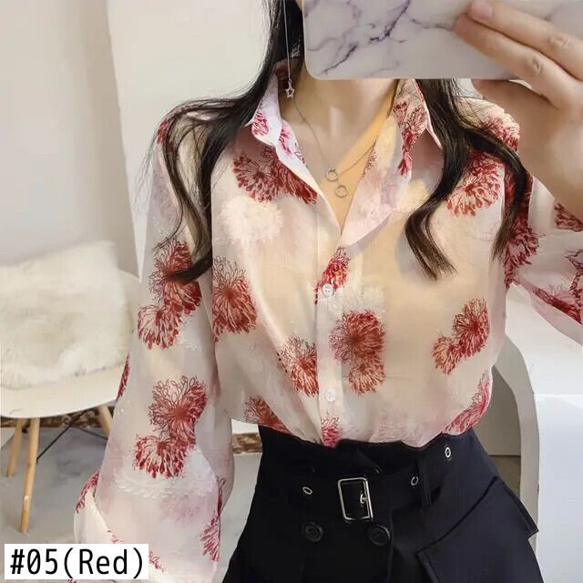 送料無料 ヴィンテージプリントラペルパフスリーブボタンルーズシフォンシャツプラスサイズ春秋ブラウストップス 大きめサイズ スプリング 春物 オータム 秋物 ビンテージ AE128877663776030277