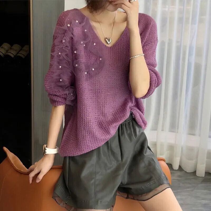 送料無料 V ネックスプライシングガーゼビーズブラウス女性の 2023 秋冬プルオーバーオフィスレディシャツ オータム 秋物 ウィンター 冬物 Vネック 会社 学校 通勤や通学にも AE1288776676734545369