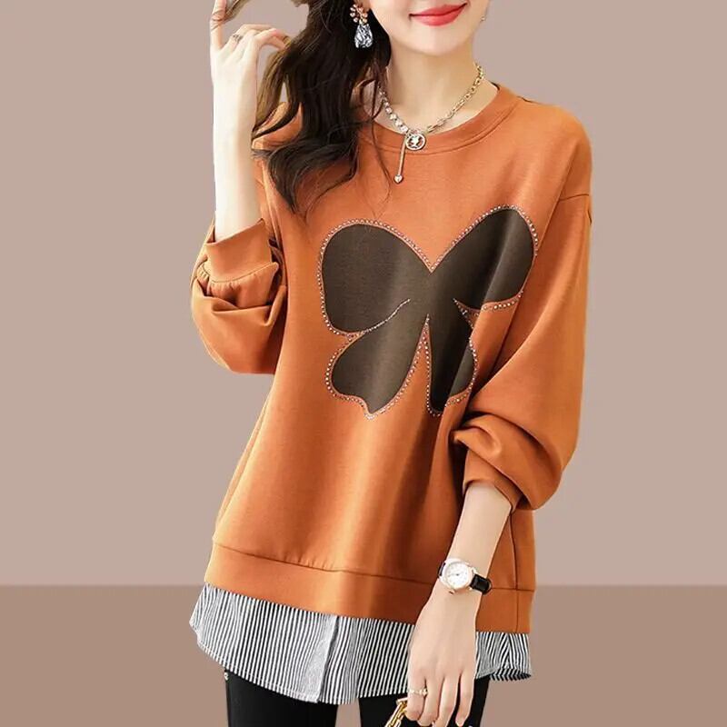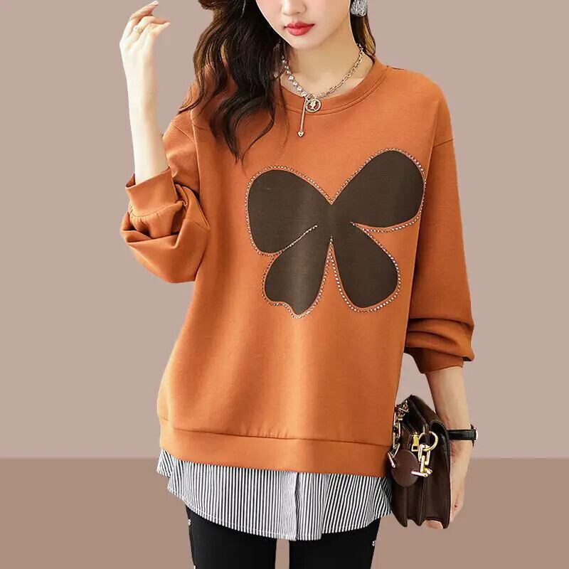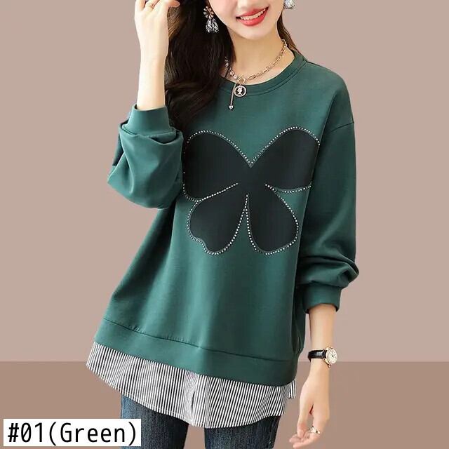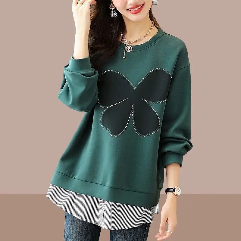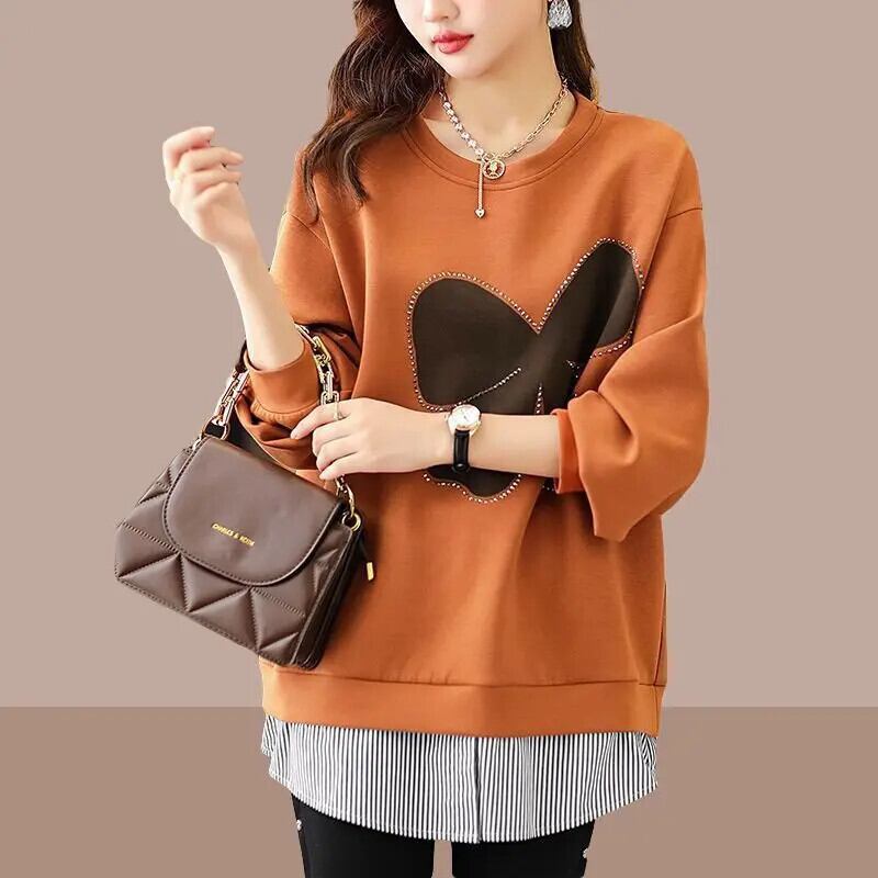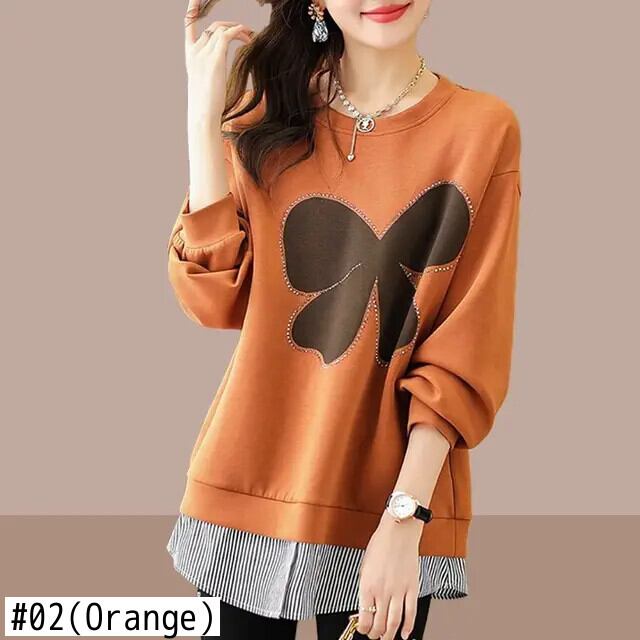 送料無料 プリントスプライスフェイクツーピースストライプブラウス2023冬特大プルオーバーダイヤモンドシャツ ウィンター 冬物 AE128877662614180489
