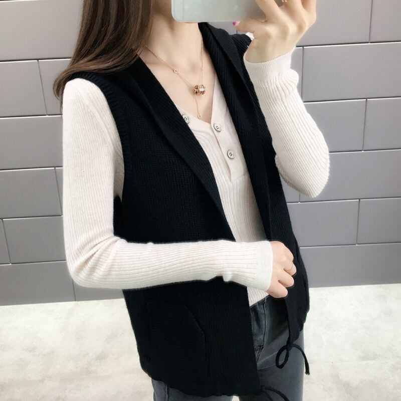 送料無料 フード付きニットポケットソリッドカラーオールマッチカーディガンセーター女性の 2022 秋トップスルーズコート オータム 秋物 AE1288776641525327027