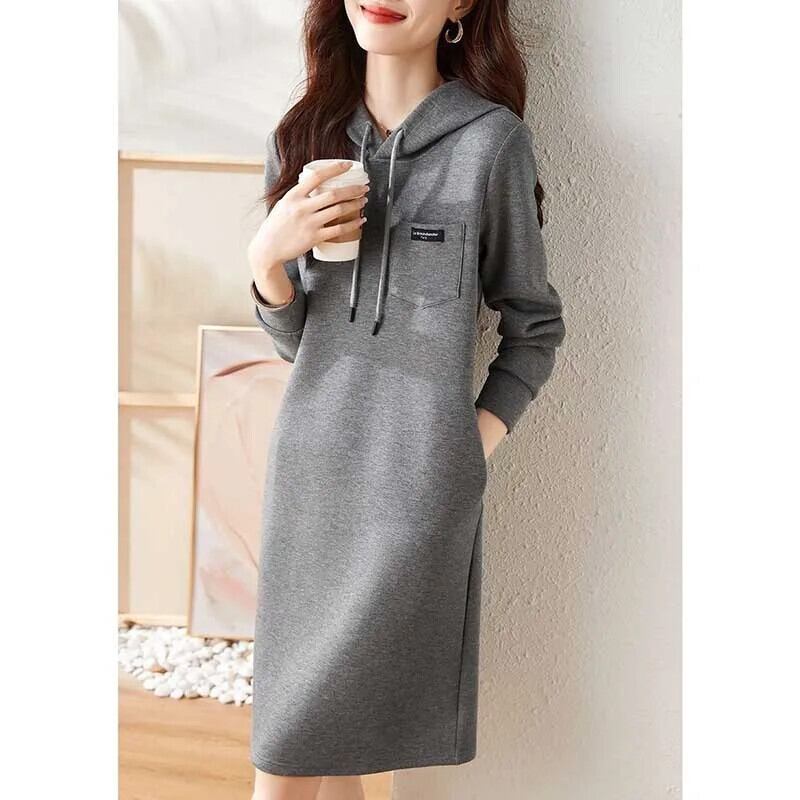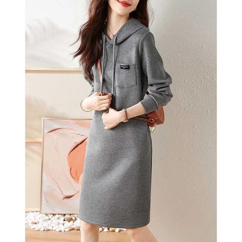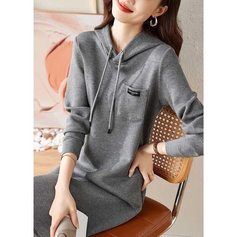 送料無料 ソリッドカラーのスプライスポケットレースアップフード付きミニドレス女性の 2024 春ルーズオールマッチドレス スプリング 春物 AE1288776690993843915