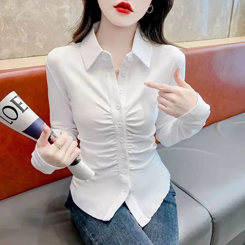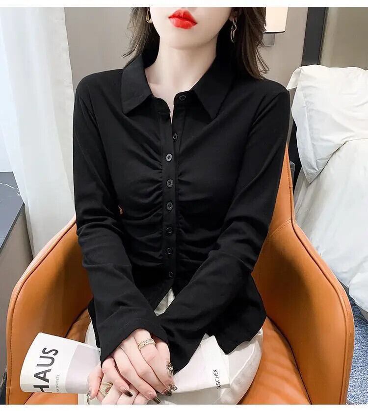 送料無料 ラペル無地ボタン折りシャツ女性の 2023 秋冬ルーズトップスオフィスレディブラウス オータム 秋物 ウィンター 冬物 ソリッドカラー 会社 学校 通勤や通学にも AE1288776632081549714