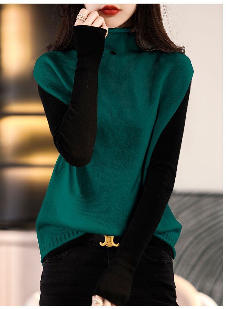 送料無料 タートルネック無地ベストセーター女性の 2022 秋ルーズプルオーバーオールマッチトップス オータム 秋物 ソリッドカラー AE1288776634949008334