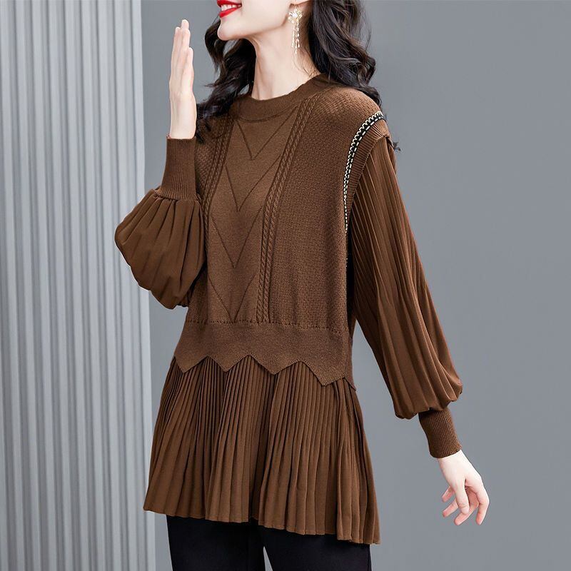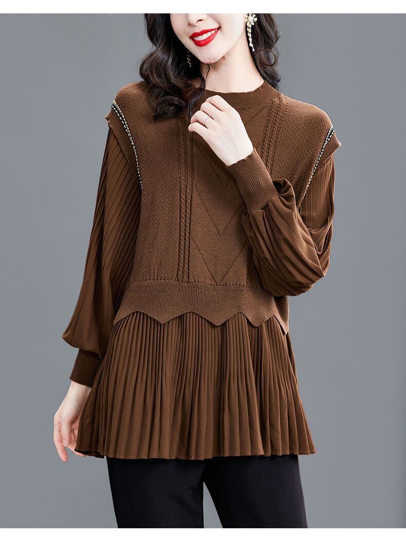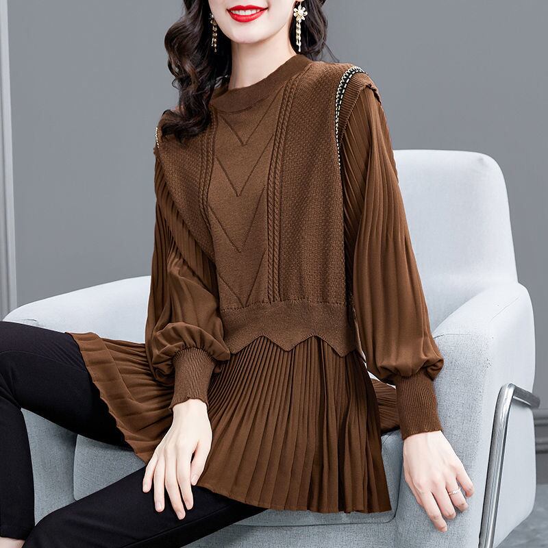 送料無料 スプライシングフリル折りフェイクツーピースブラウス女性の 2023 秋冬特大トップス通勤シャツ ラッフル オータム 秋物 ウィンター 冬物 AE1288776671599465318