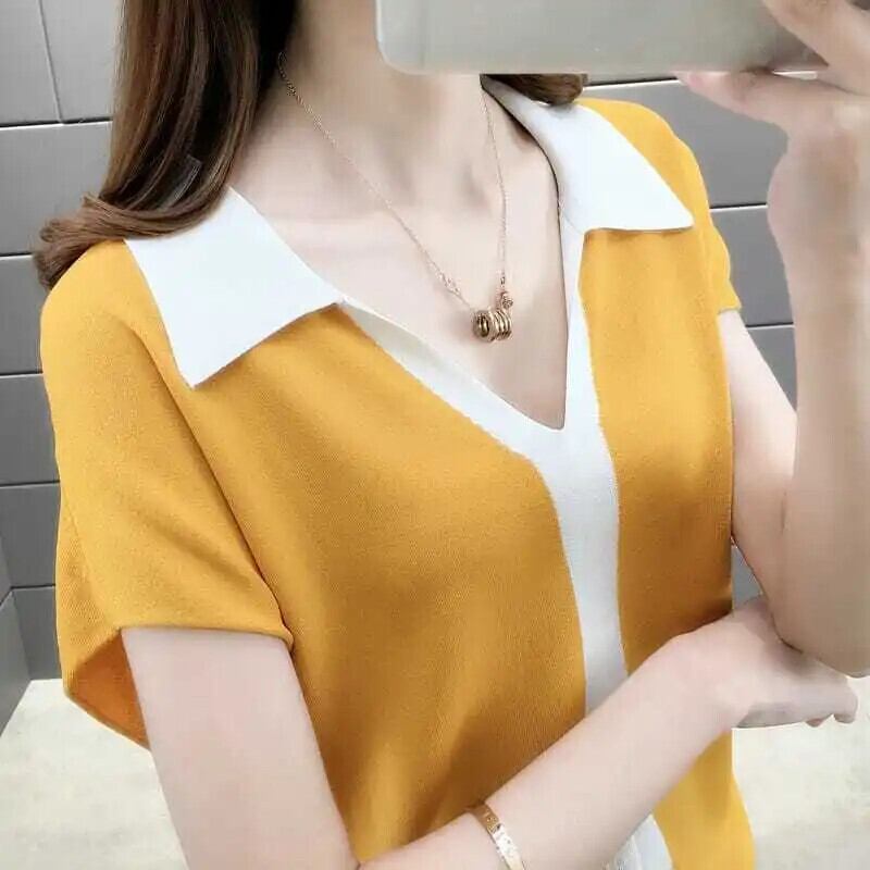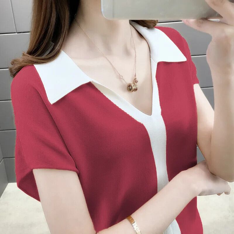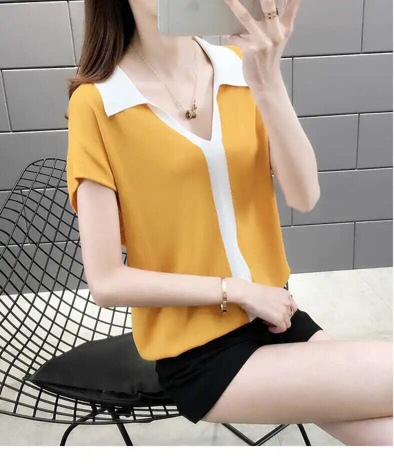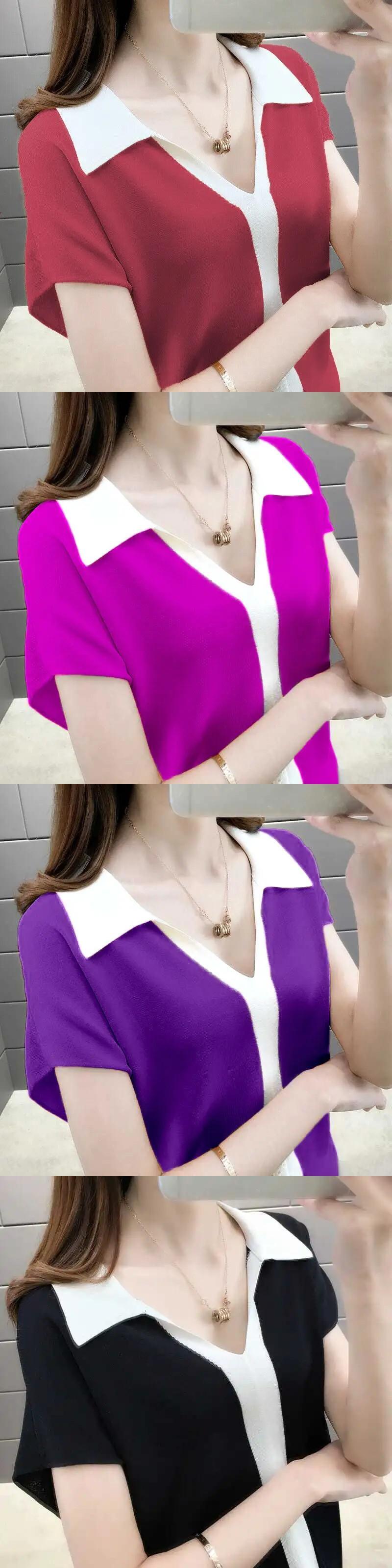 送料無料 ターンダウンカラースプライス半袖ルーズシャツオーバーサイズトップス夏の通勤ブラウス ショート ハーフスリーブ サマー 夏物 AE1288776676433621098