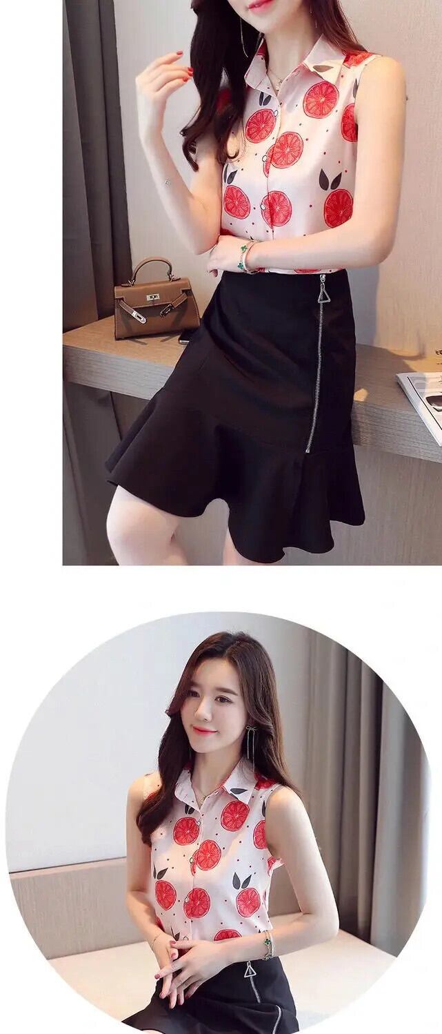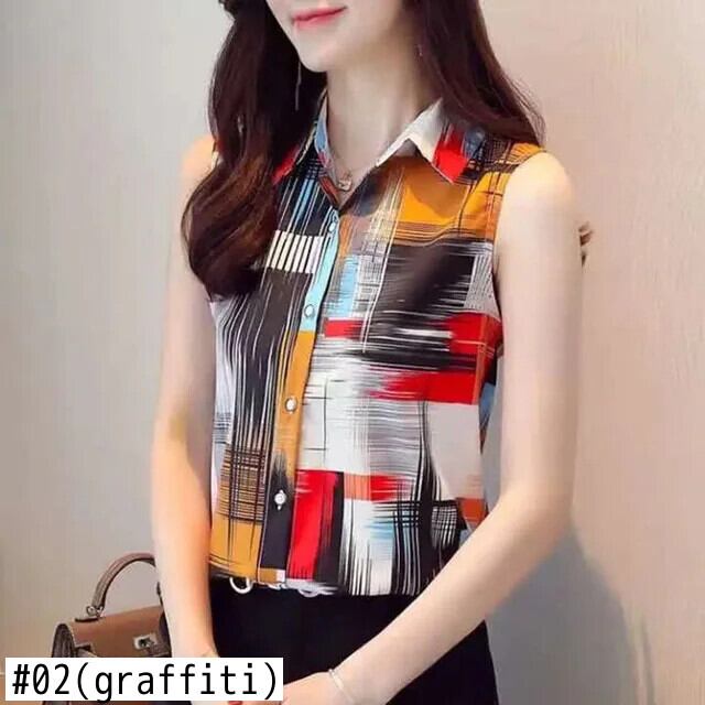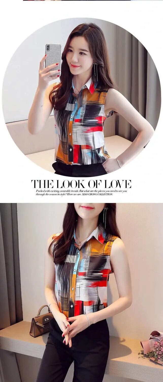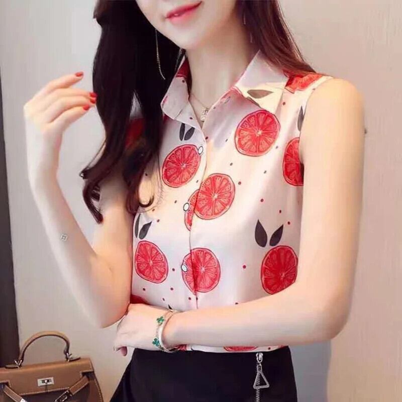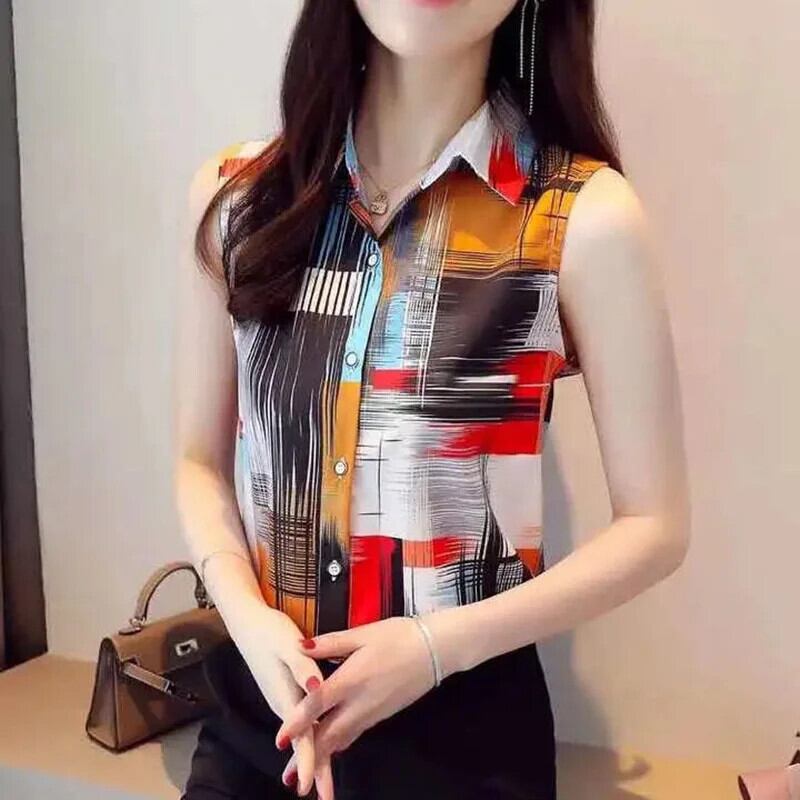送料無料 ラペルノースリーブプリントスプライスボタンシフォンシャツ夏のオフィスレディトップスプラスサイズの女性のブラウス 大きめサイズ サマー 夏物 会社 学校 通勤や通学にも AE1288776678367243393