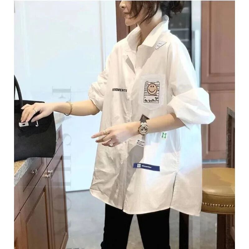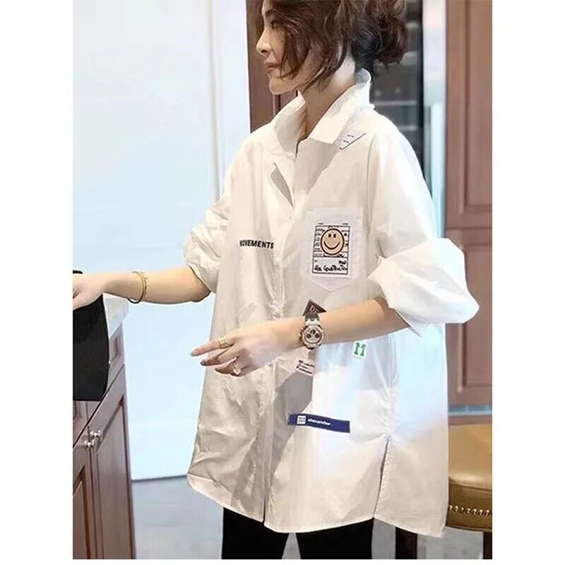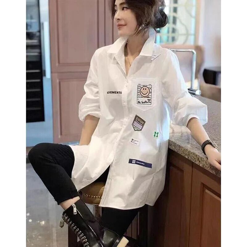 送料無料 ラペルスプライシングボタンポケット刺繍シャツ女性の 2023 秋冬ルーズ通勤トップスブラウス オータム 秋物 ウィンター 冬物 AE1288776618131992092