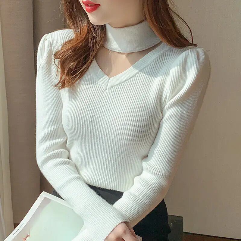 送料無料 ソリッドカラースプライシング中空アウトセーター女性の 2023 秋冬ルーズニットプルオーバーオールマッチトップス オータム 秋物 ウィンター 冬物 AE1288776623743138430