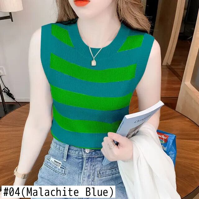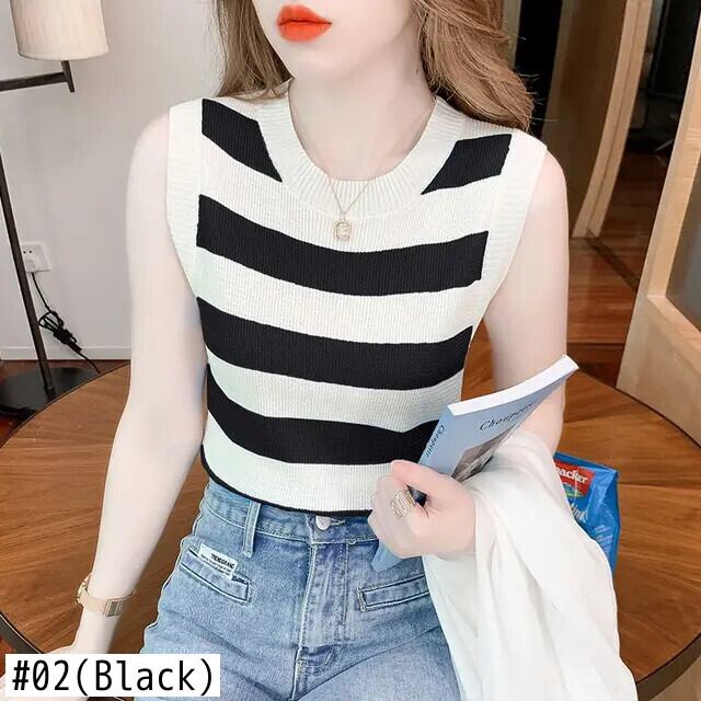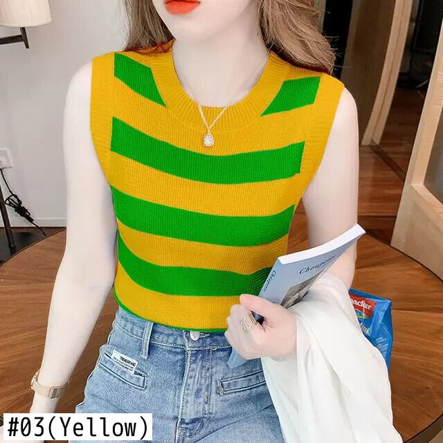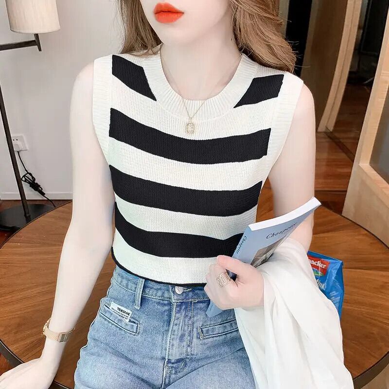送料無料 プリント O ネック スプライス ストライプ ノースリーブ ブラウス レディース 2023 夏 プルオーバー オールマッチ シャツ サマー 夏物 Oネック AE1288776664167009407