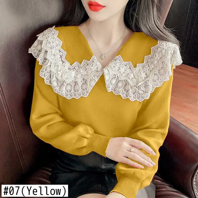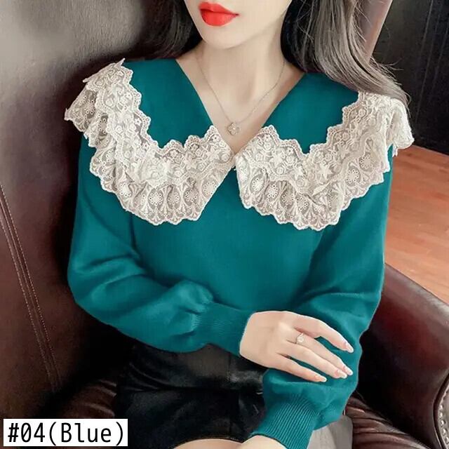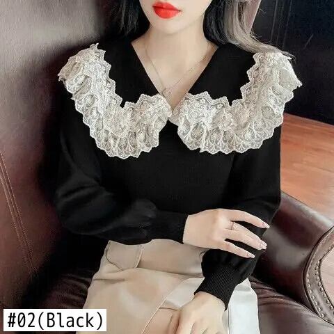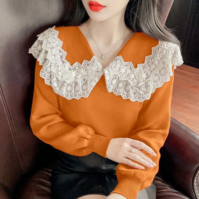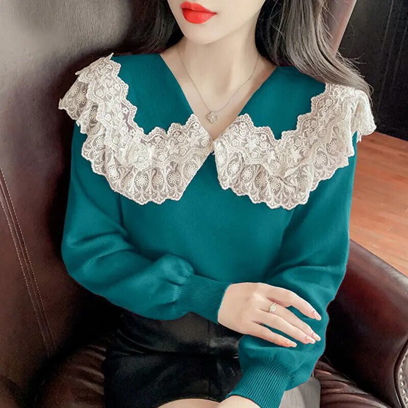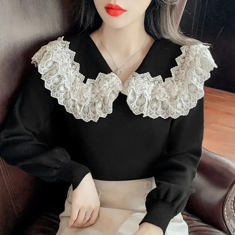 送料無料 ソリッドカラーのスプライシングガーゼレースセーター女性の 2023 秋冬ルーズオールマッチプルオーバー甘いトップス 大人ガーリー スウィート キュート カジュアル オータム 秋物 ウィンター 冬物 AE1288776610245178936