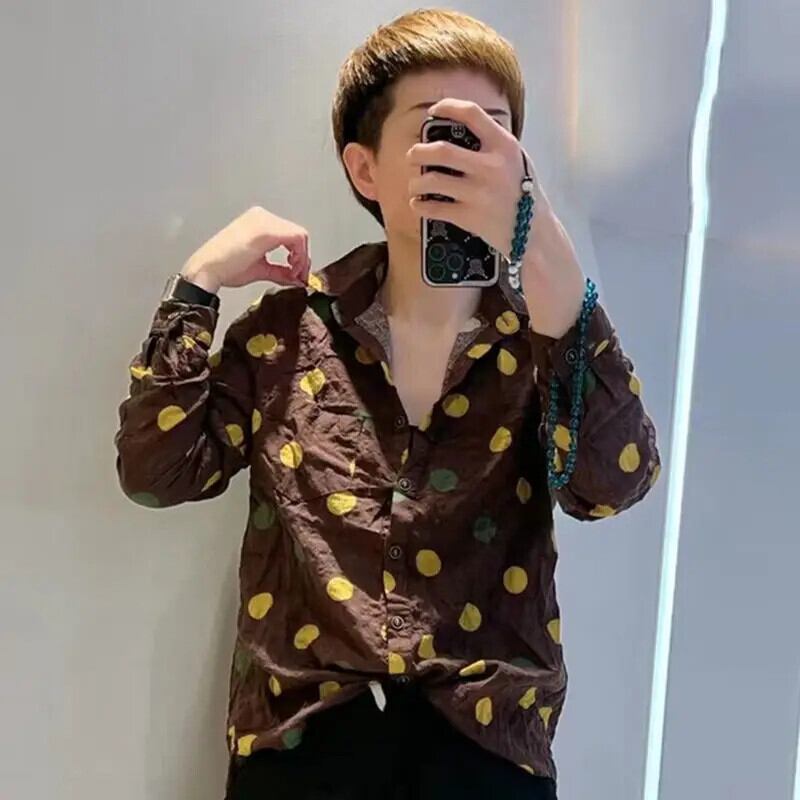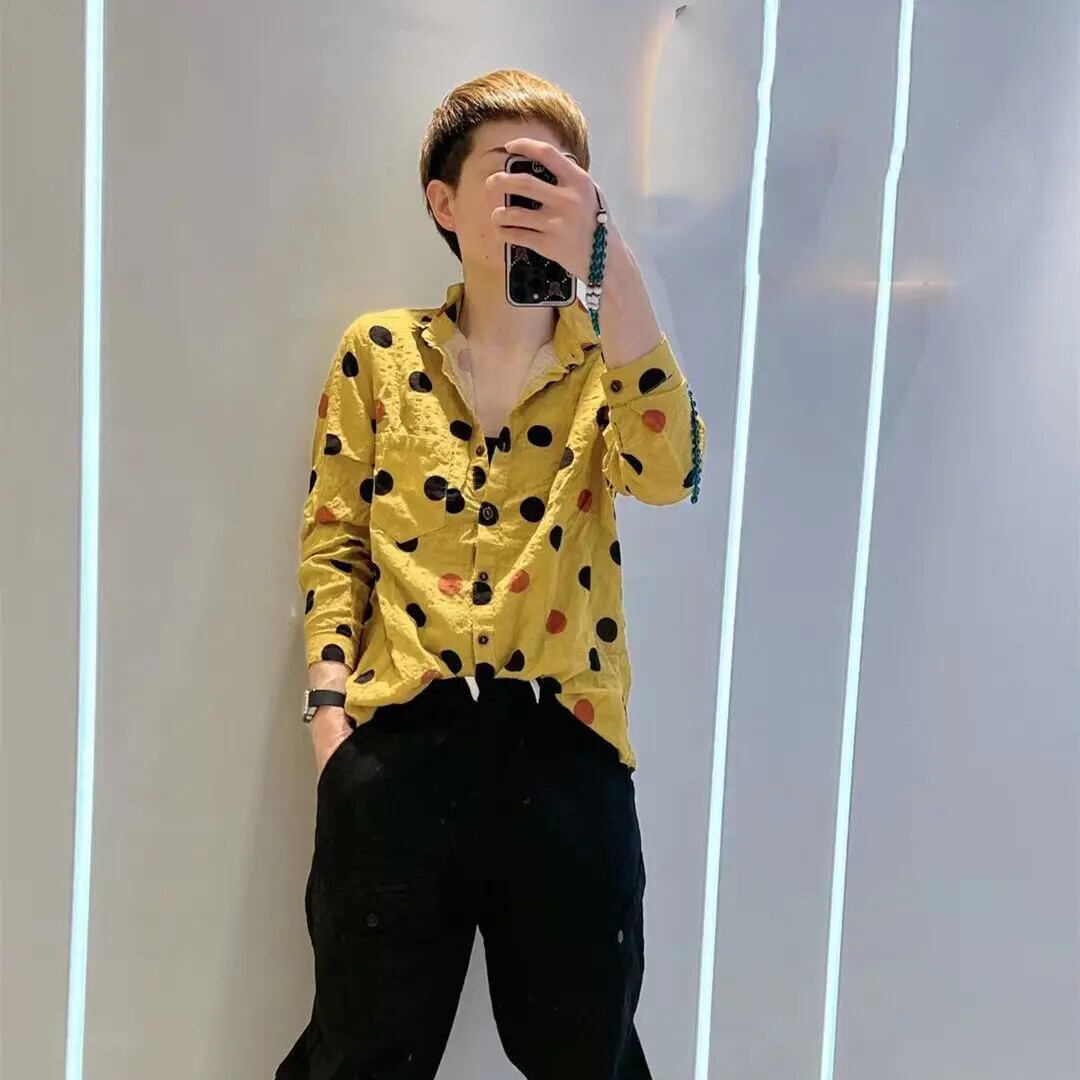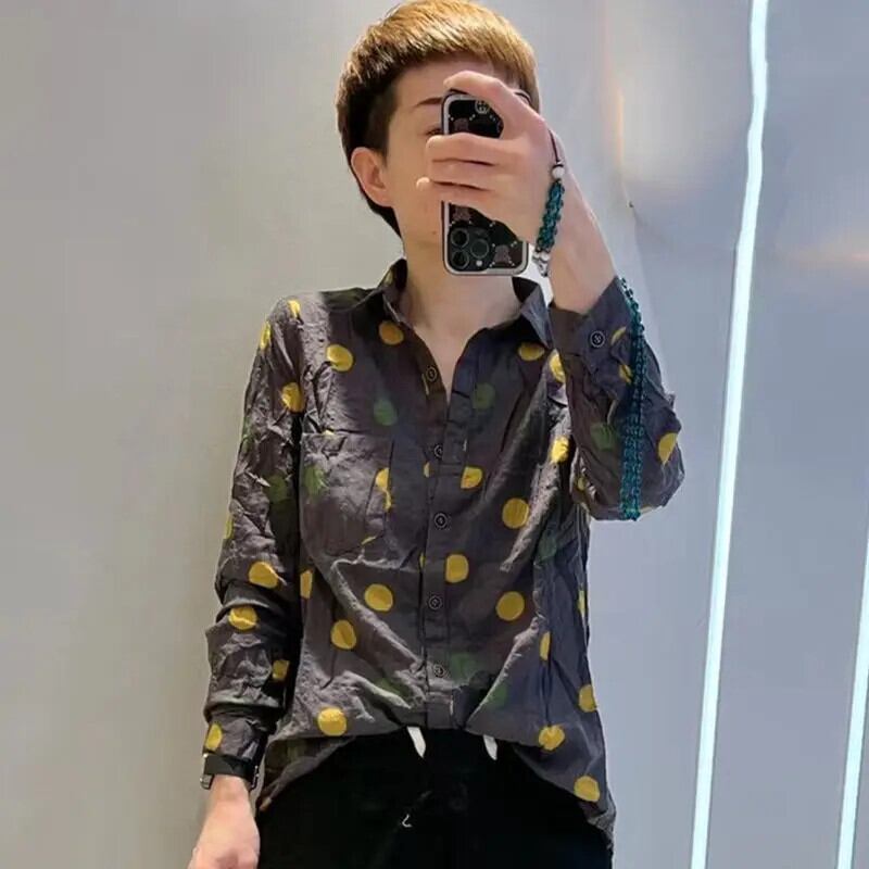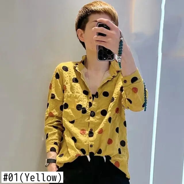 送料無料 プリントボタンポケット水玉シャツ 2024 秋通勤レディースルーズ長袖ブラウス ロング オータム 秋物 AE1288776639566811484