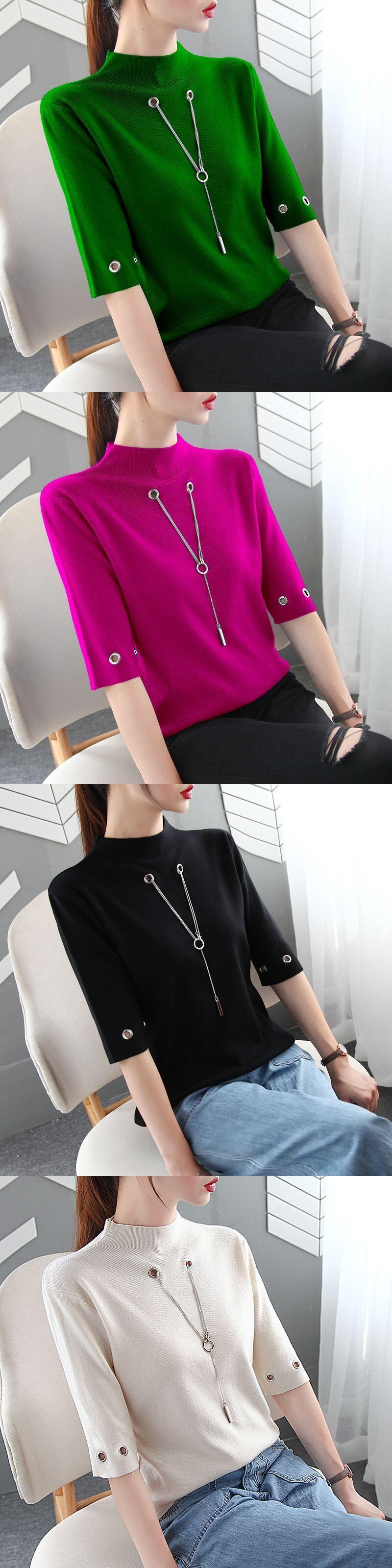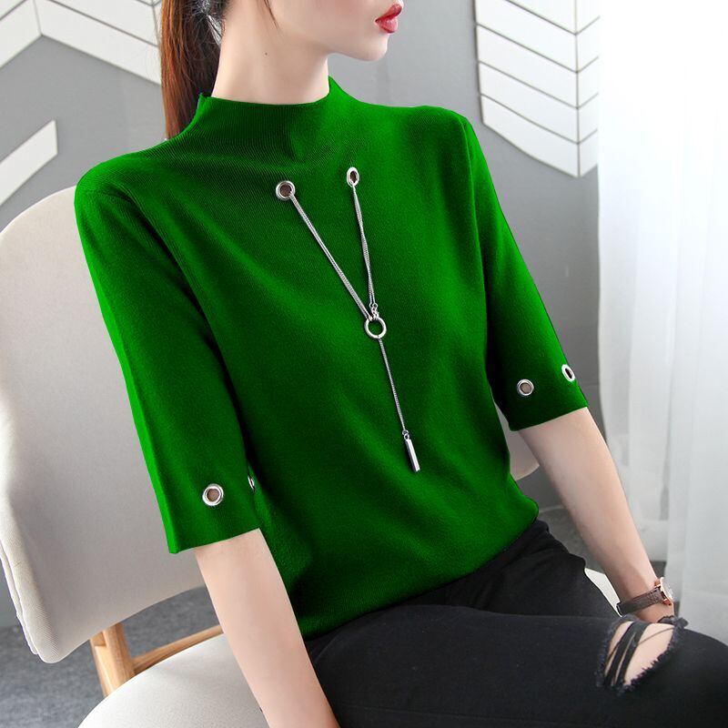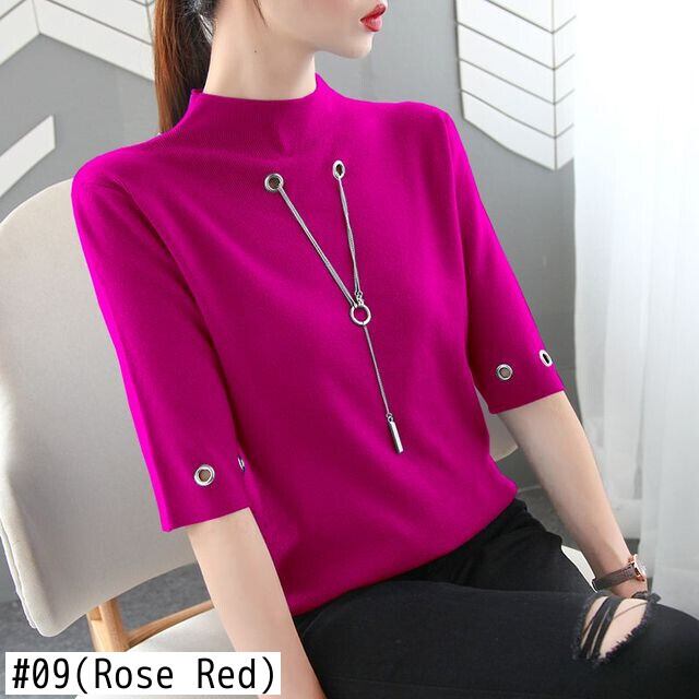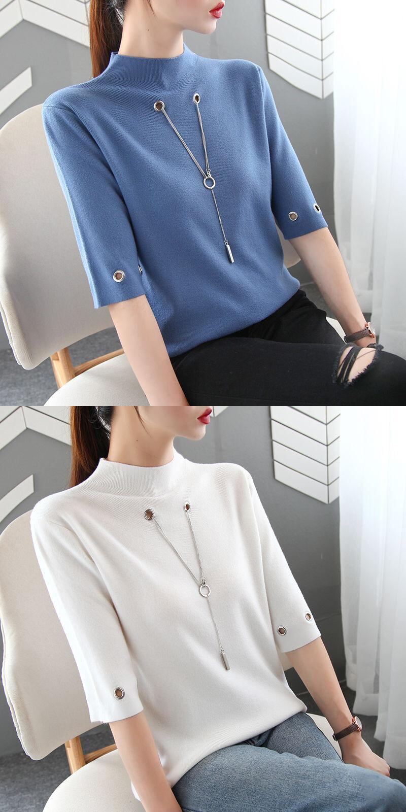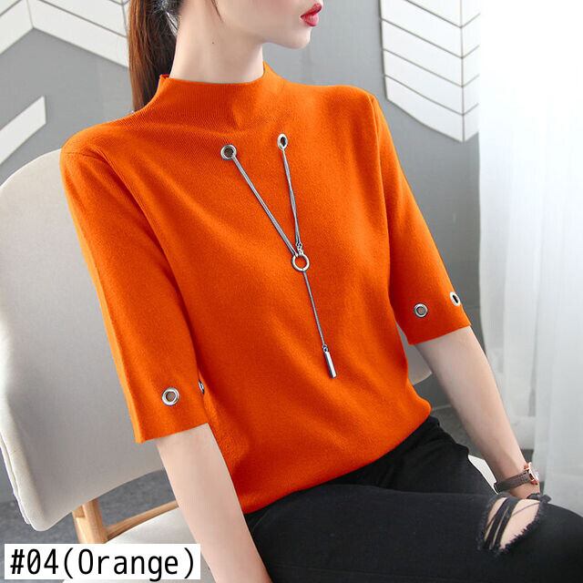 送料無料 スタイリッシュなオールマッチソリッドカラー半袖 Tシャツレディース 2023 春プルオーバーニット Tシャツ ハーフスリーブ スプリング 春物 AE1288776654818622345