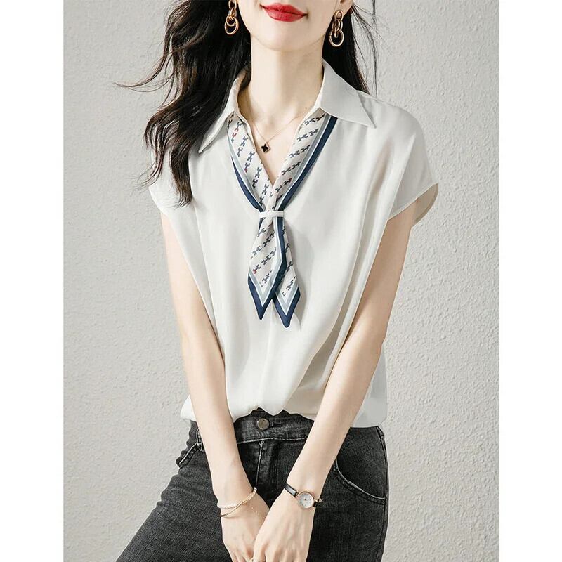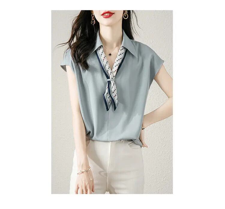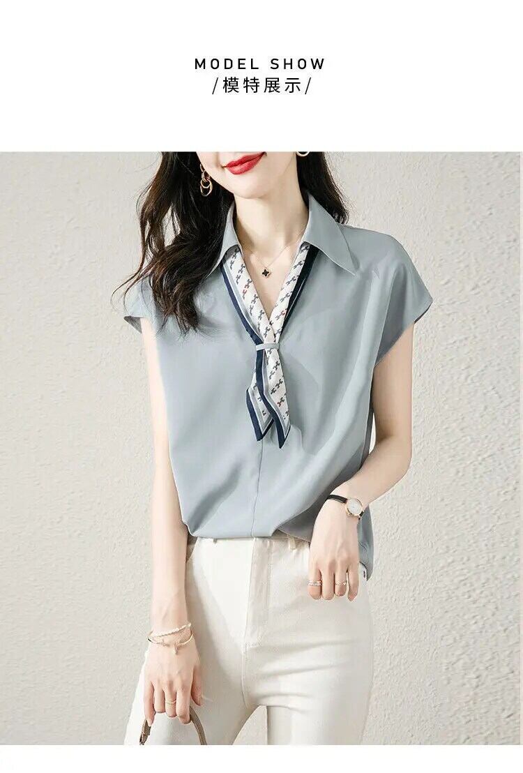 送料無料 V ネックスプライスプリントネクタイシフォンシャツ夏ルーズプルオーバー特大通勤女性ブラウス サマー 夏物 Vネック AE1288776666023287205