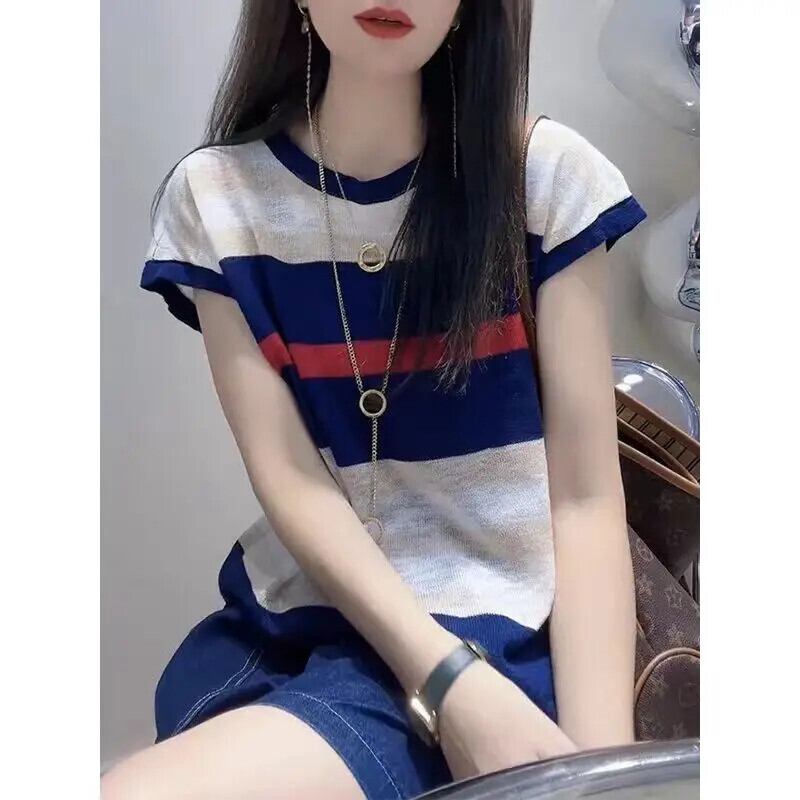 送料無料 プリント O ネックルーズ半袖カラーブラウス女性の 2023 夏オーバーサイズトップスシャツ ショート ハーフスリーブ サマー 夏物 Oネック AE1288776619337573246