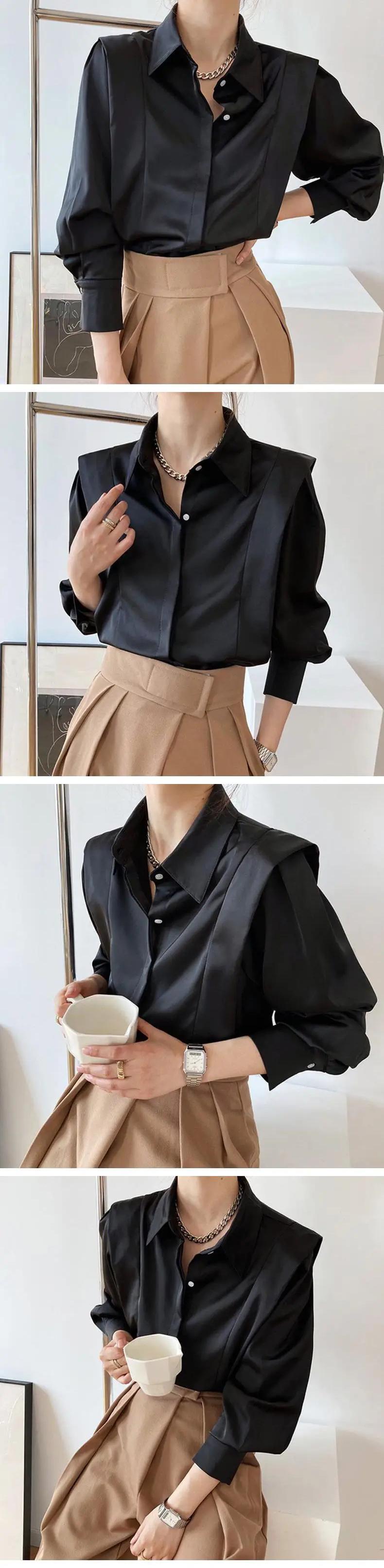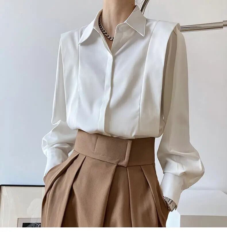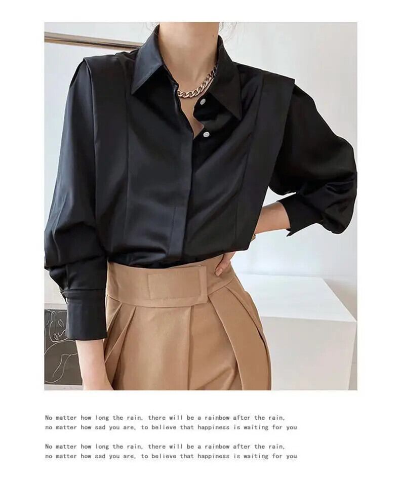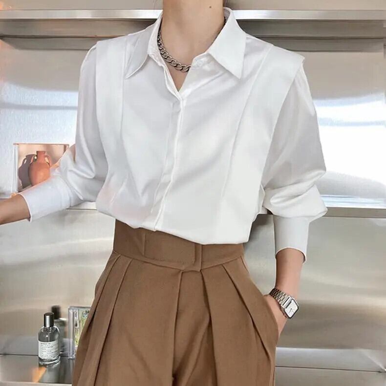 送料無料 ソリッドカラーボタンスプライスルーズシャツ2023春トップスオールマッチオフィスレディブラウス スプリング 春物 会社 学校 通勤や通学にも AE1288776636200694007