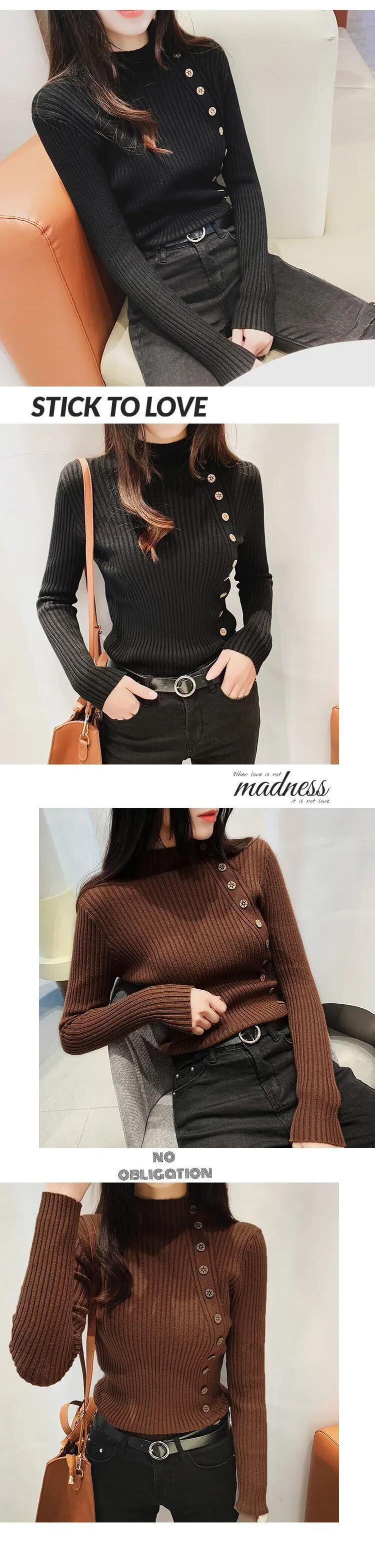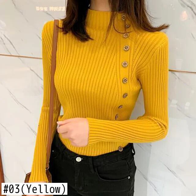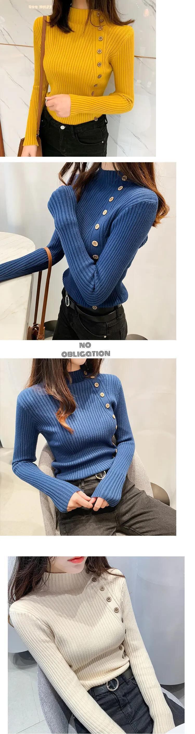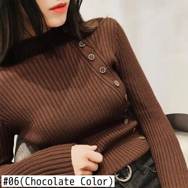 送料無料 スタイリッシュなソリッドカラーのボタンスプライシングオールマッチ不規則なセーターの女性の 2022 秋プルオーバールーズ暖かいトップス オータム 秋物 AE1288776672195543624