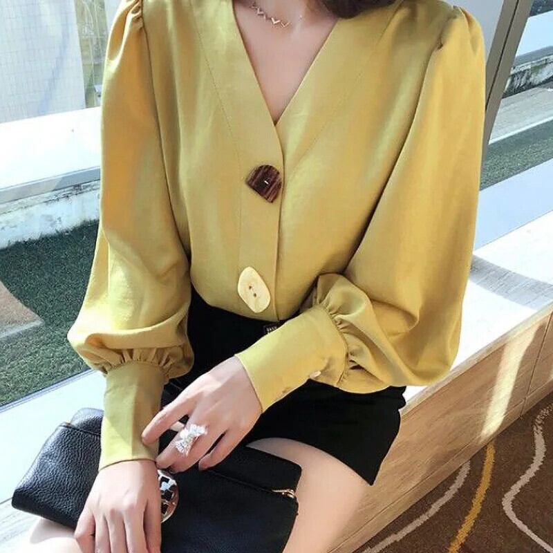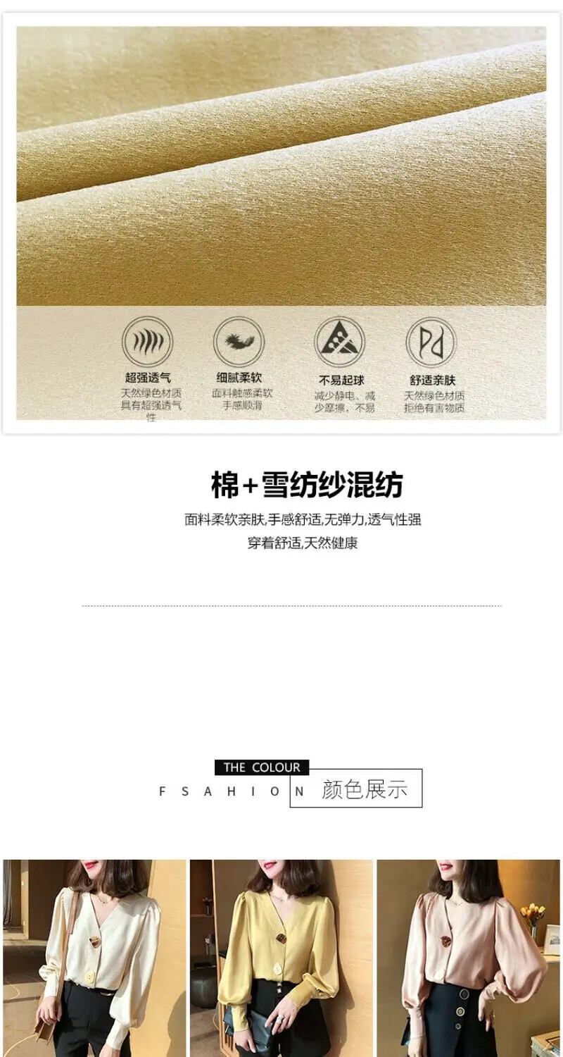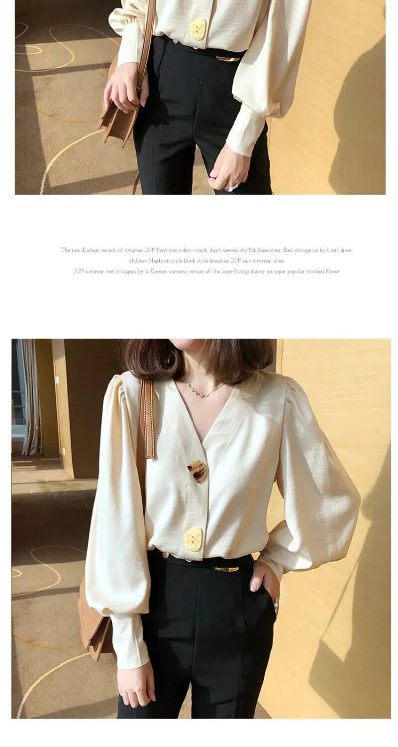 送料無料 ヴィンテージランタン長袖シフォンシャツレディース2024春オフィスレディVネックルーズボタンブラウス ロング スプリング 春物 ビンテージ 会社 学校 通勤や通学にも AE1288776643627387895
