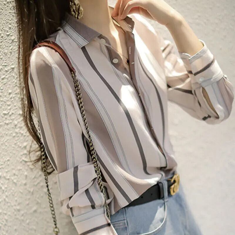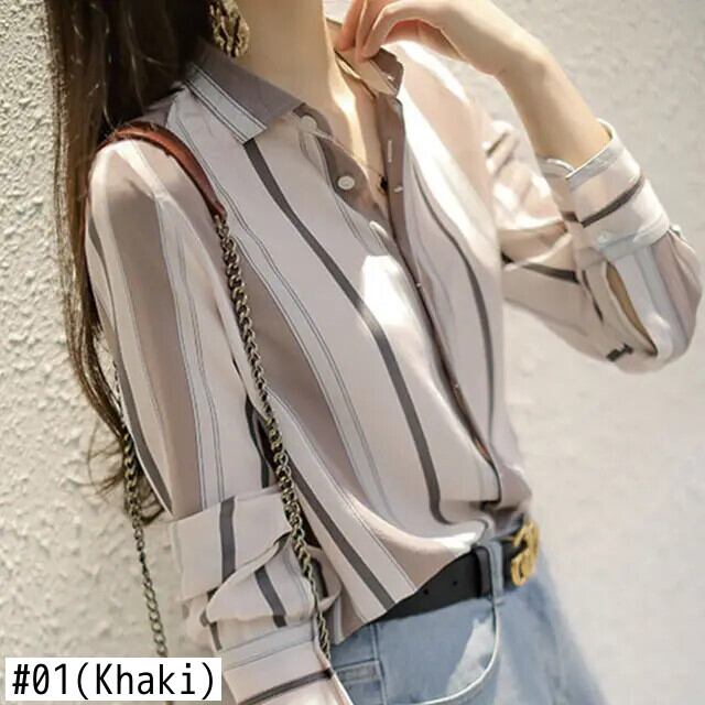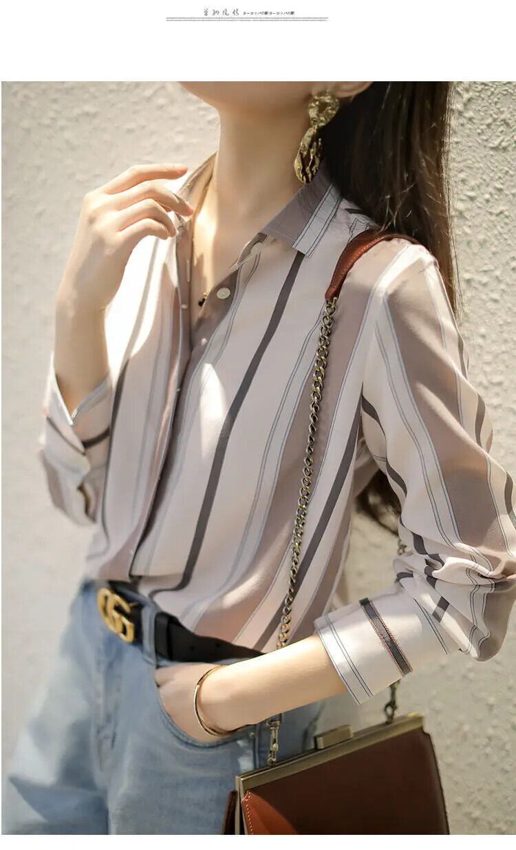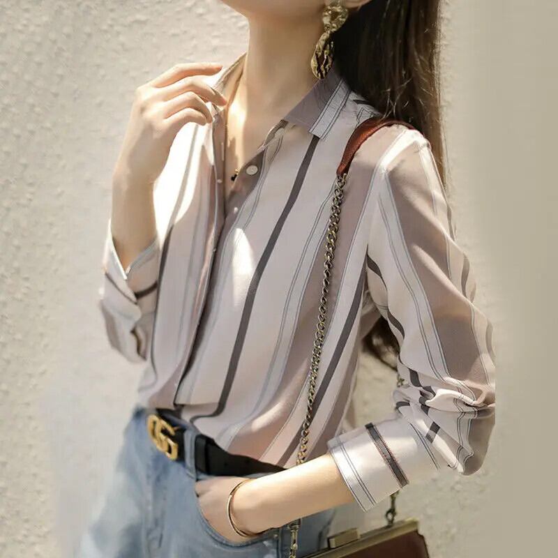 送料無料 ラペルストライプルーズシフォンシャツプラスサイズ 2022 春オフィスレディ通勤女性のボタンブラウス 大きめサイズ スプリング 春物 会社 学校 通勤や通学にも AE1288776695805450208