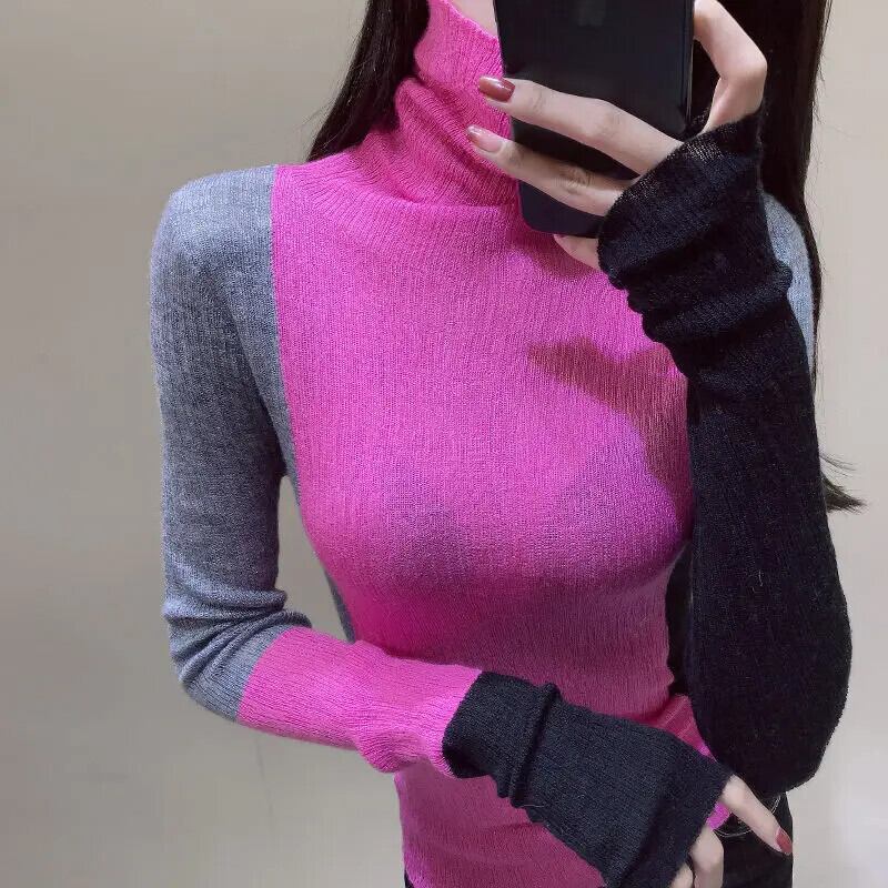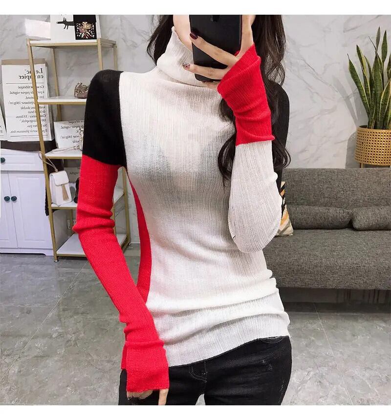 送料無料 タートルネック非対称カラーセーター女性の 2022 秋特大プルオーバーオールマッチトップス オータム 秋物 AE1288776666031821419