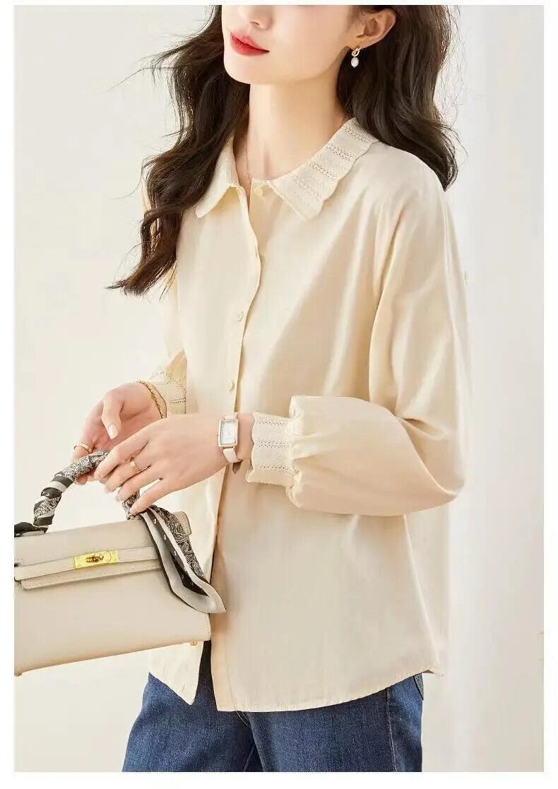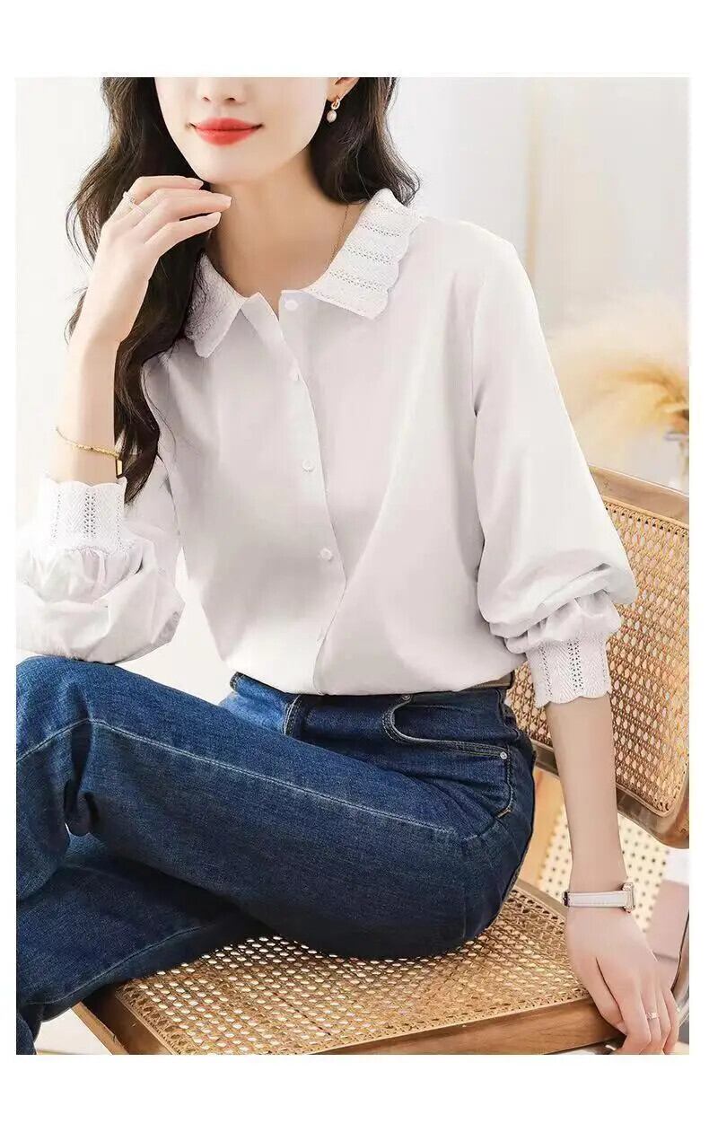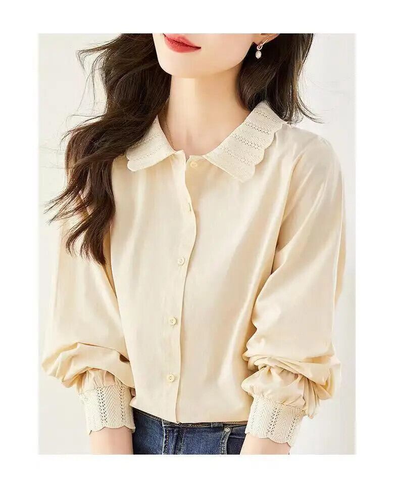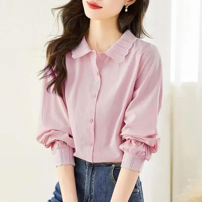 送料無料 甘いピーターパン襟フリルランタンスリーブシャツ 2023 秋トップスオフィスレディブラウス ラッフル 大人ガーリー スウィート キュート カジュアル オータム 秋物 会社 学校 通勤や通学にも AE1288776623002868996