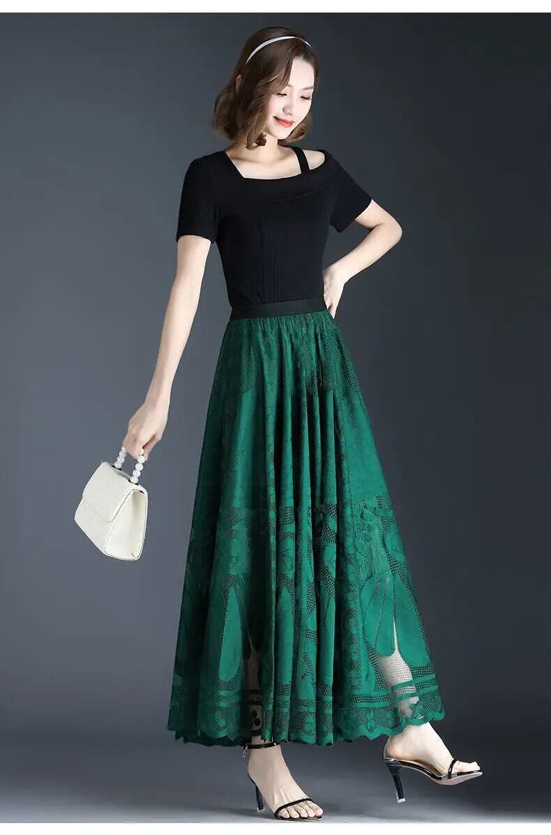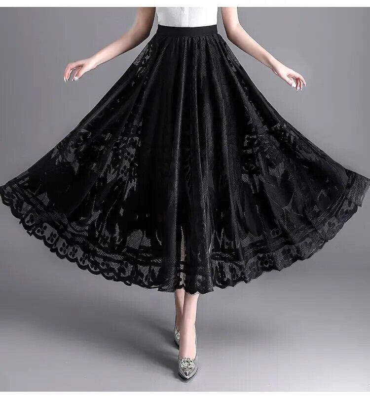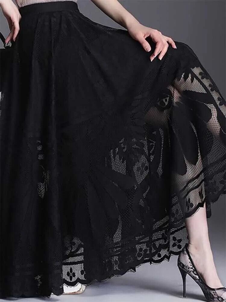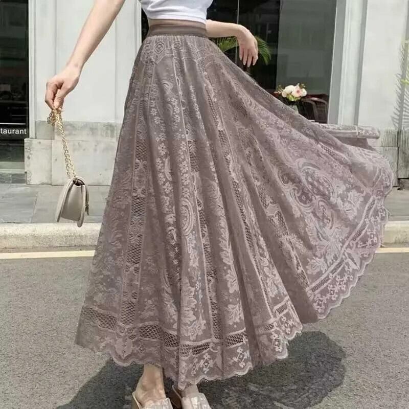 送料無料 弾性ウエストスプライシングガーゼレースウエストスカート女性の 2024 春緩い無地オフィスレディスカート エラスティック 伸縮 スプリング 春物 ソリッドカラー 会社 学校 通勤や通学にも AE1288776665824001499