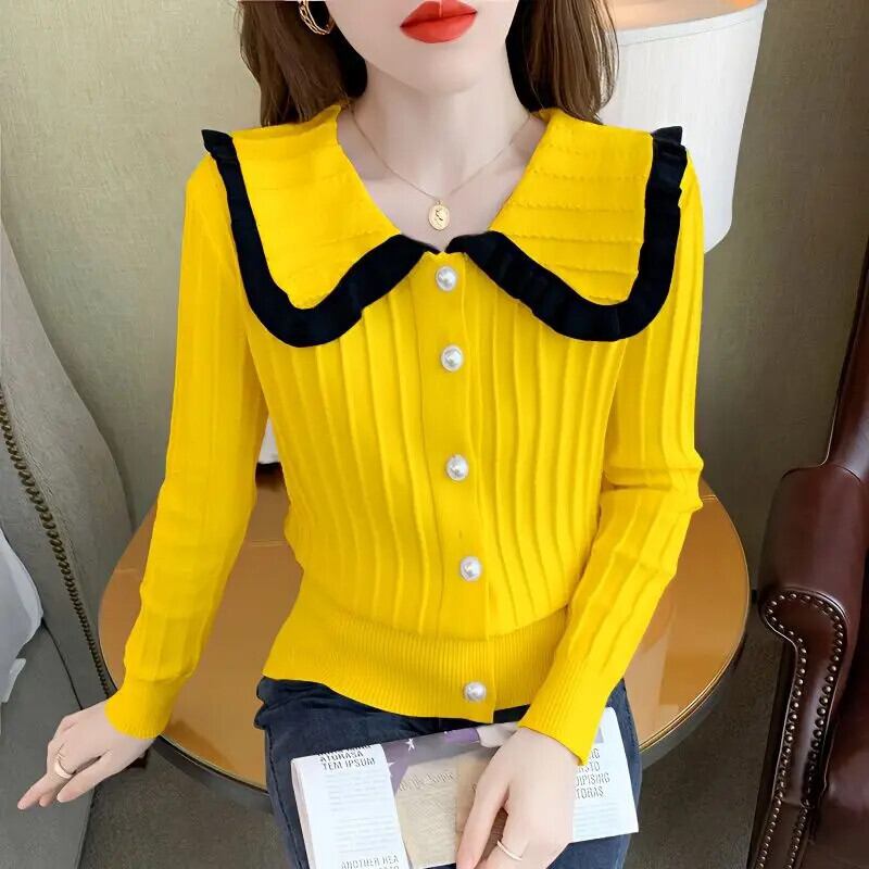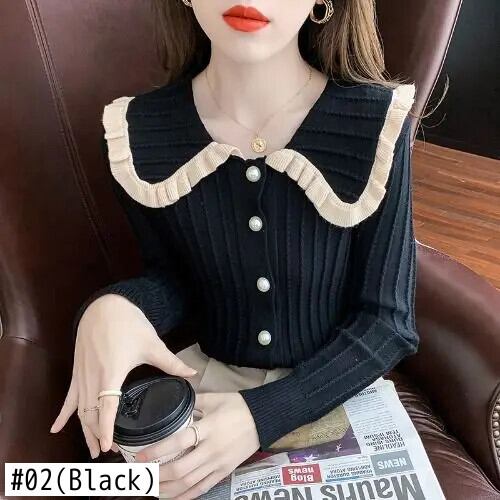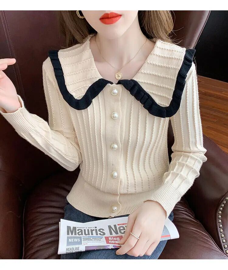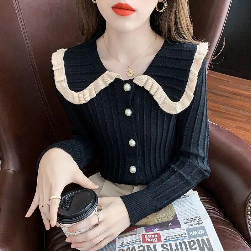 送料無料 甘いピーターパン襟スプライシングボタン折りセーター女性の 2023 秋冬ソリッドカラーカーディガントップス 大人ガーリー スウィート キュート カジュアル オータム 秋物 ウィンター 冬物 AE1288776641283319788