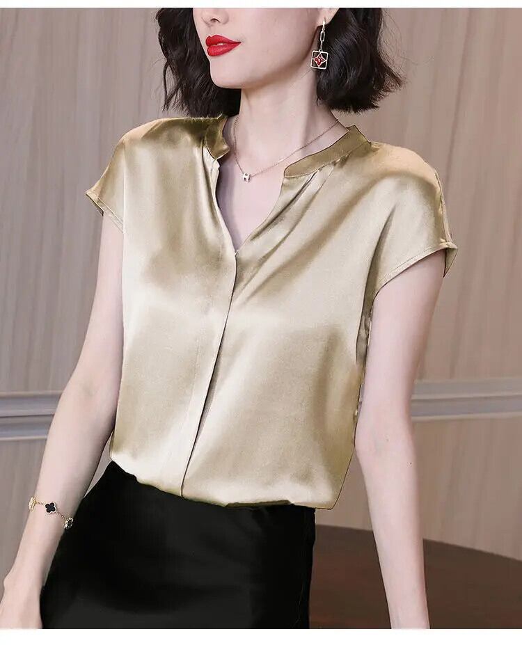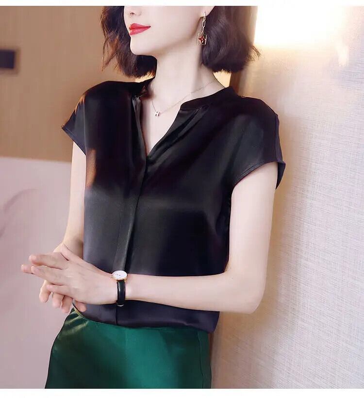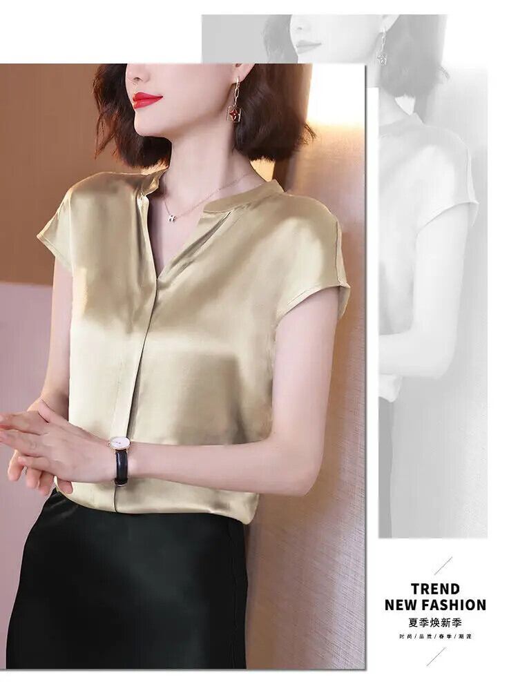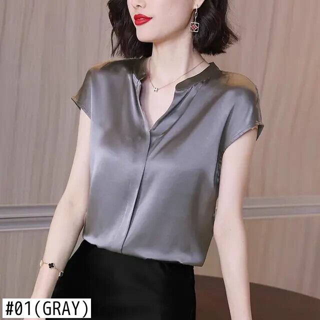 送料無料 ヴィンテージラグラン半袖ベーシックサテンプルオーバーシャツレディース 2022 オフィスレディ通勤 V ネックブラウス ショート ハーフスリーブ Vネック ビンテージ 会社 学校 通勤や通学にも AE1288776691287875826