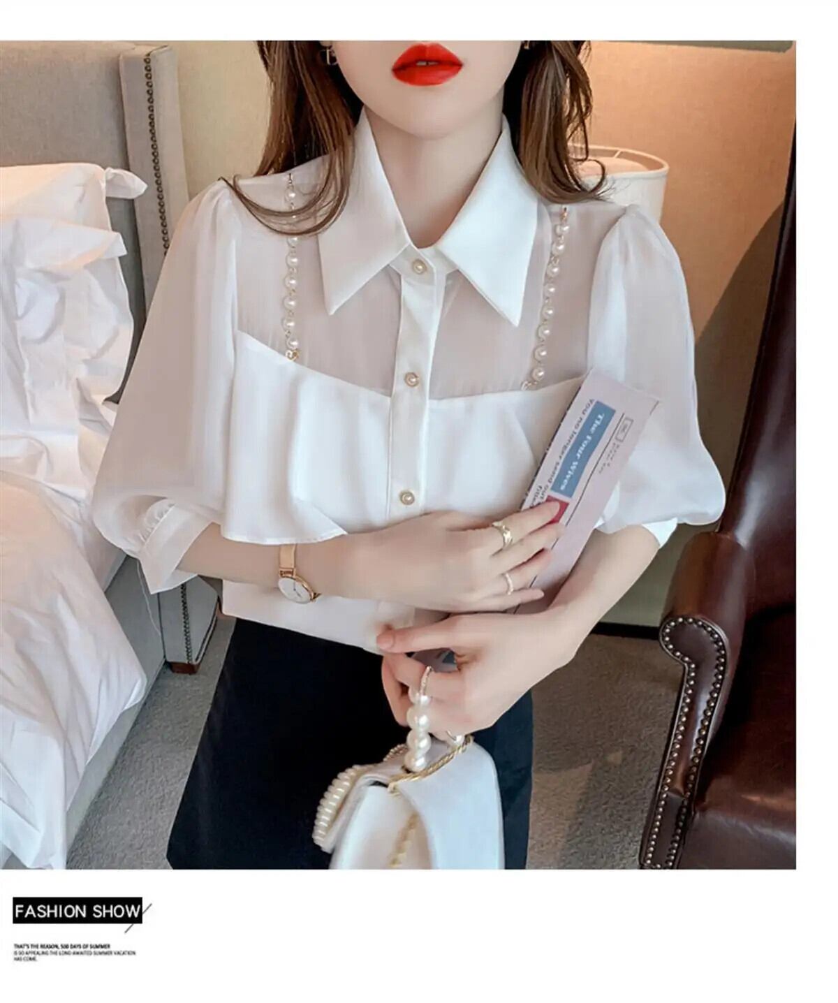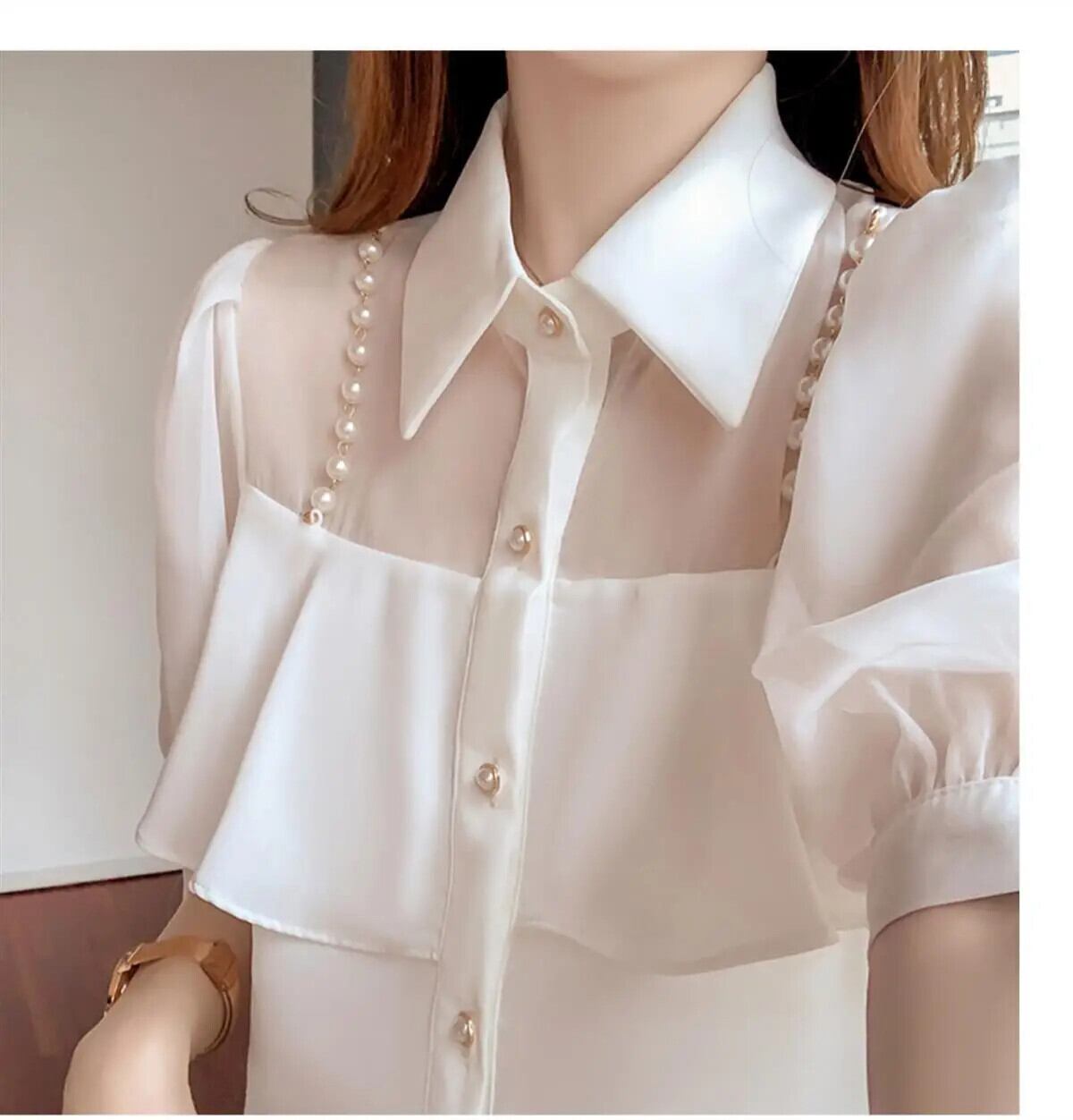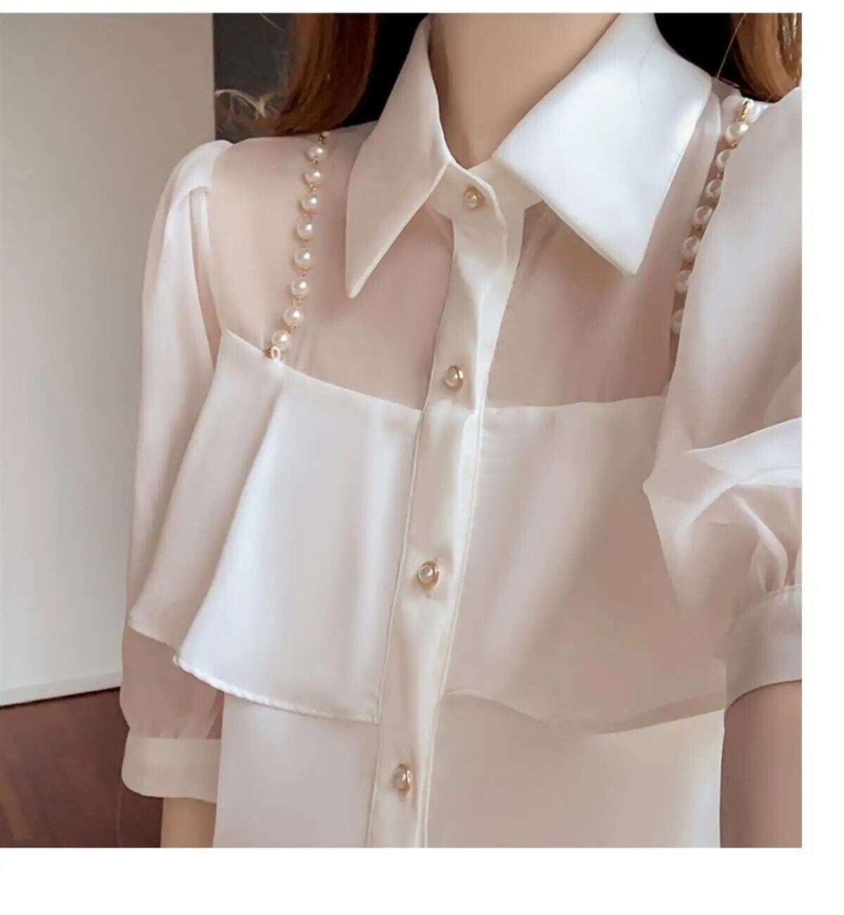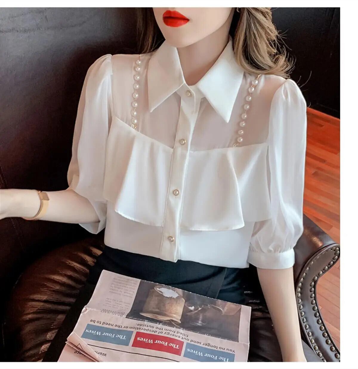 送料無料 甘いラペルビーズスプライスボタンシフォンブラウス夏プラスサイズルーズトップス半袖通勤シャツ ショート ハーフスリーブ 大きめサイズ 大人ガーリー スウィート キュート カジュアル サマー 夏物 AE1288776642810961974