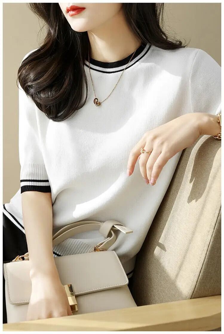 送料無料 プリント O ネック スプライス ブラウス レディース 2023 夏 プルオーバー ルーズ ハーフスリーブ シャツ 半袖 サマー 夏物 Oネック AE1288776615860960884
