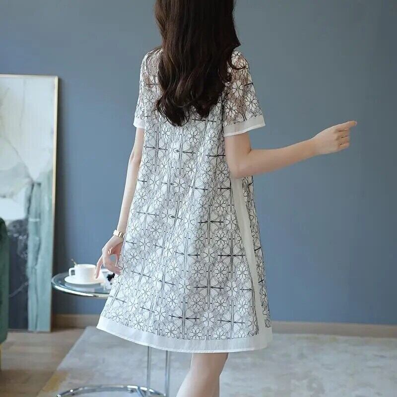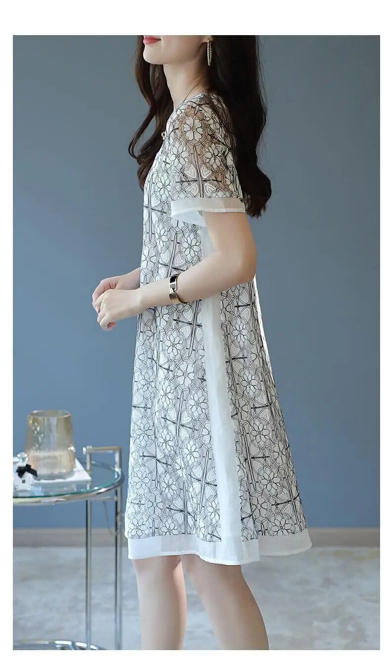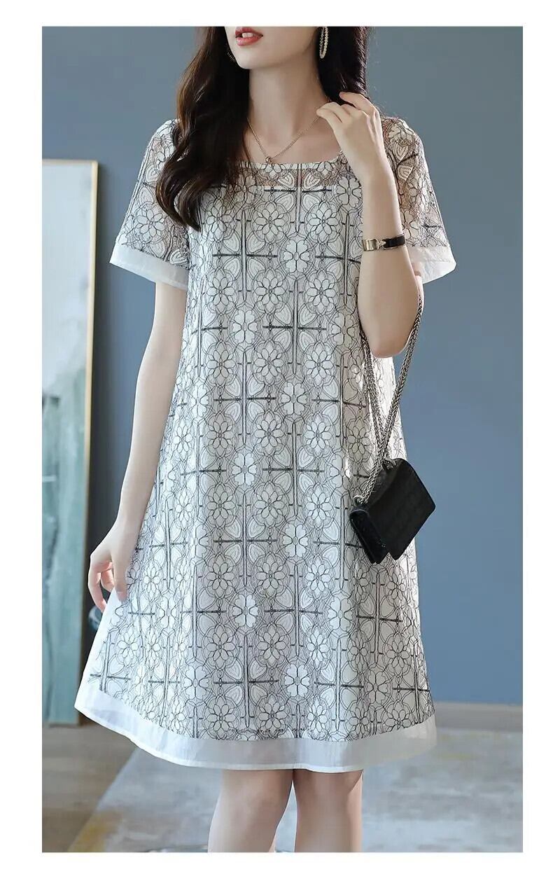 送料無料 スクエア襟ガーゼ中空アウトレースヴィンテージドレス女性 2024 夏ルーズオフィスレディ半袖ドレス ショート ハーフスリーブ サマー 夏物 スクウェア ビンテージ 会社 学校 通勤や通学にも AE1288776641949833796